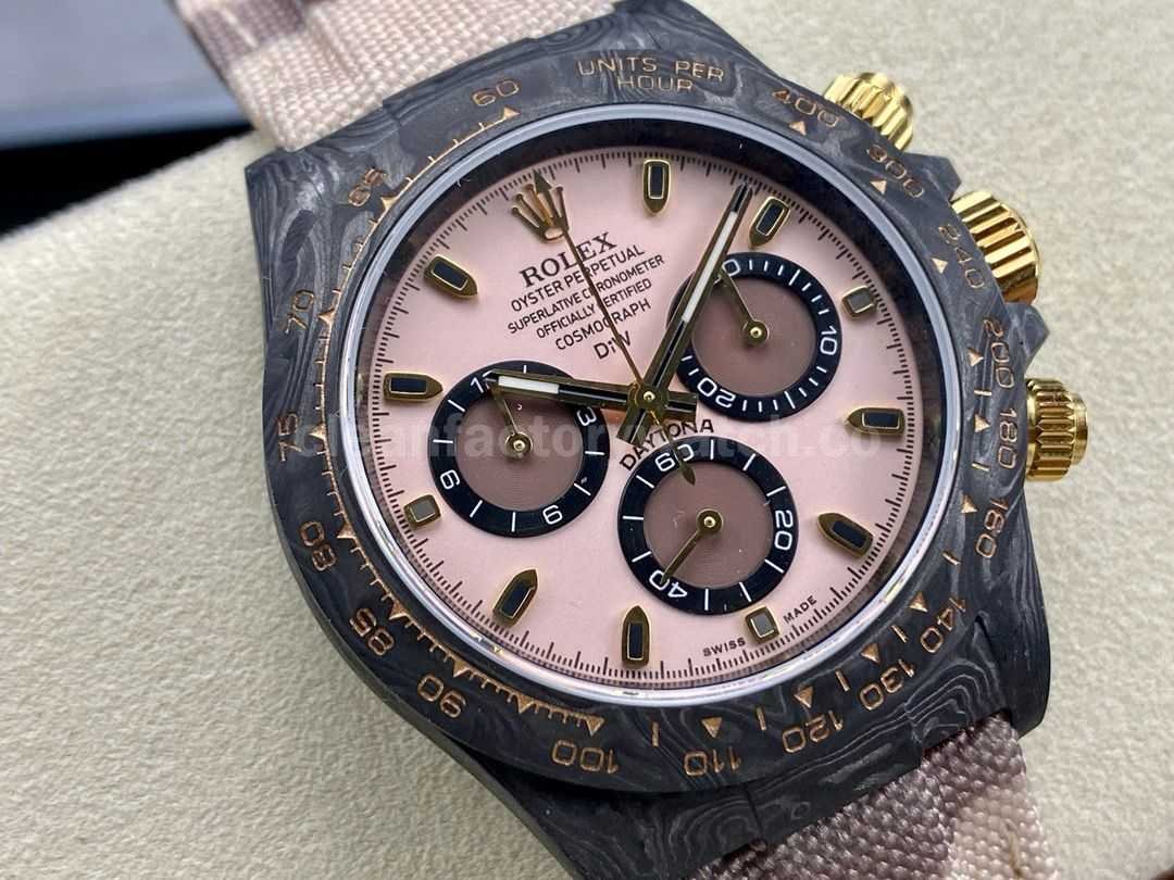 DIW Factory Rolex Daytona 116500 Limited Edition 40mm Carbon Fiber Artificial Fiber Woven Strap Pink Dial