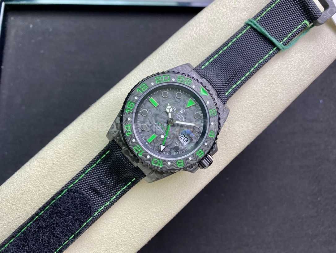 [Case] The size of the watch is 40X12.2, which is consistent with the original. JH ingenuity casts the unique style of carbon fiber Rolex Greenwich. The market exclusively uses raw materials imported from Japan and uses nanotechnology to create a full carbon fiber watch case. There will be no pores in the case body. The bezel and bottom cover are made of high-composite carbon fiber and super luminous powder. The details are hand-chamfered and polished. The texture is extraordinary.