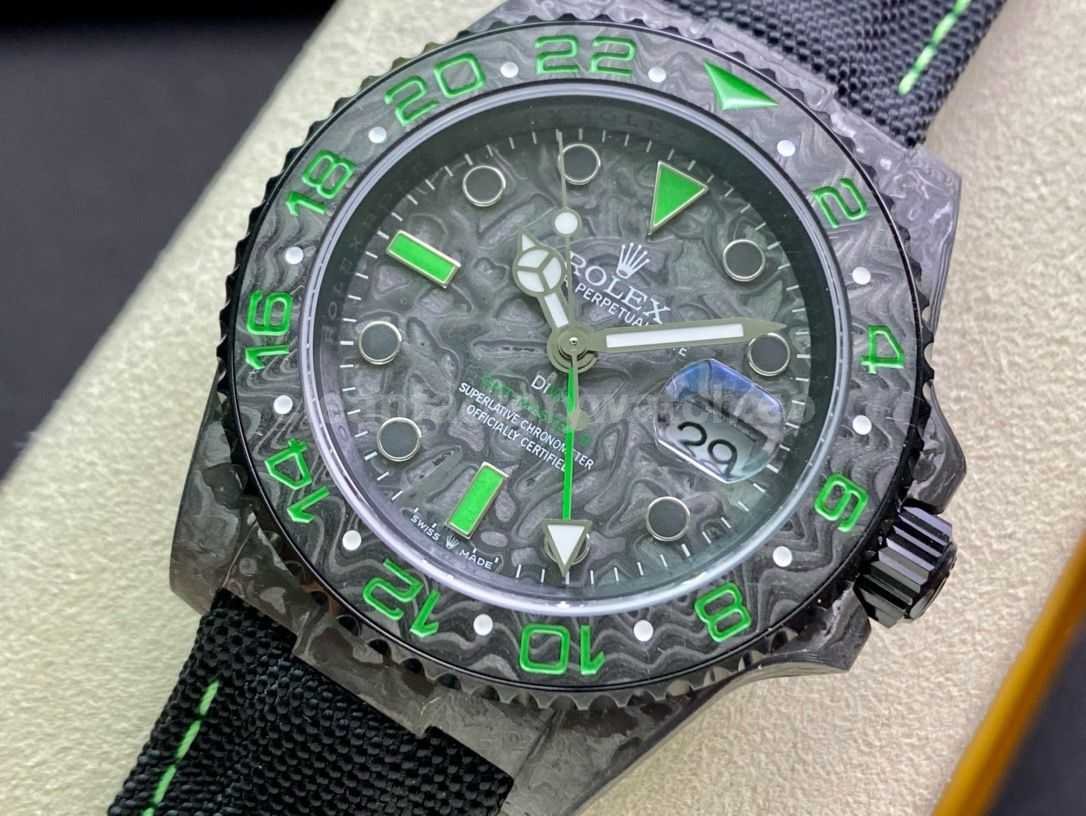 DIW Factory Rolex GMT-Master II 126710 Limited Edition 40mm Green Word Carbon Fiber Artificial Fiber Woven Strap Green Carbon Fiber Dial