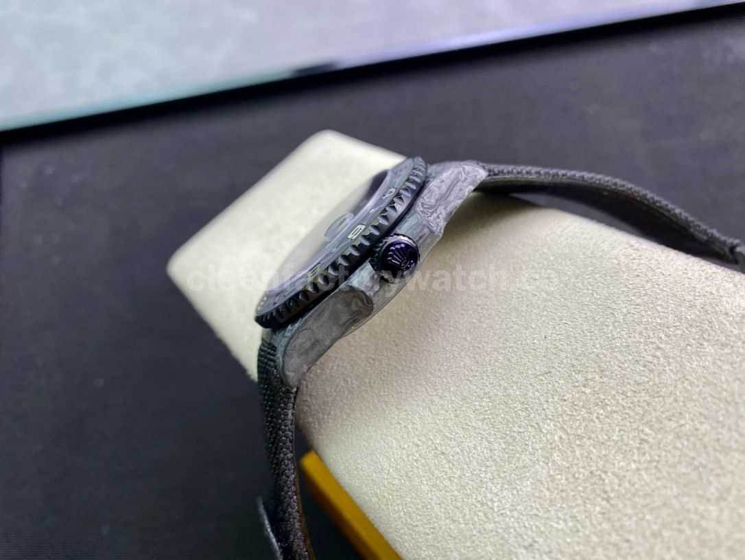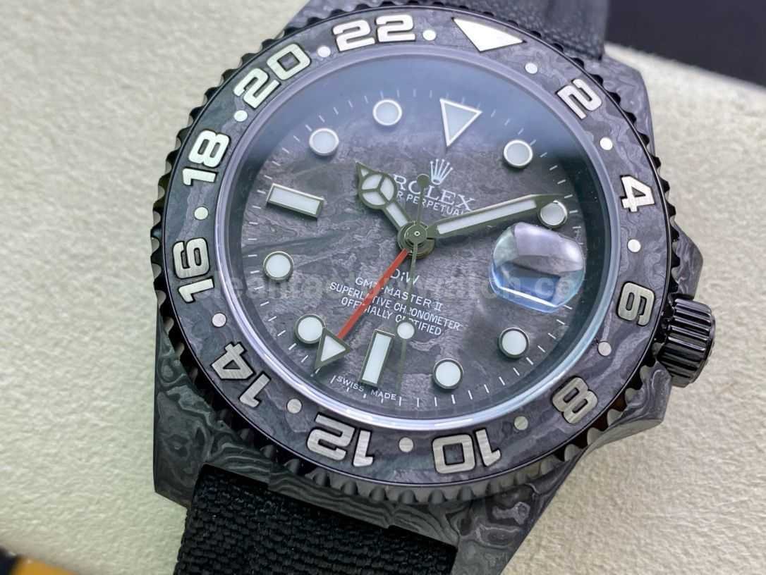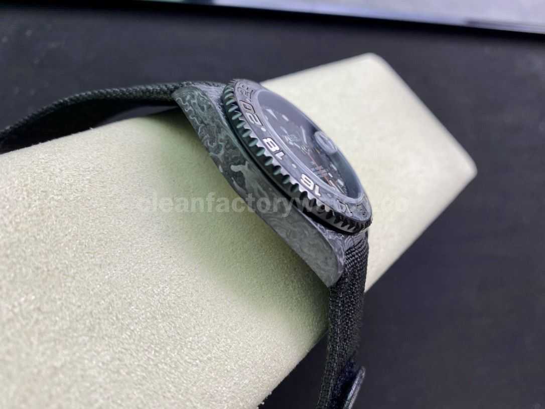 [Case] The size of the watch is 40X12.2, which is consistent with the original. JH ingenuity casts the unique style of carbon fiber Rolex Greenwich. The market exclusively uses raw materials imported from Japan and uses nanotechnology to create a full carbon fiber watch case. There will be no pores in the case body. The bezel and bottom cover are made of high-composite carbon fiber and super luminous powder. The details are hand-chamfered and polished. The texture is extraordinary.