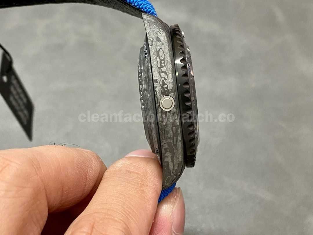 1. The 43mm carbon fiber case is remade, including the crown shoulder guard, which is also made of this material that combines technology, lightweight and irregular texture.