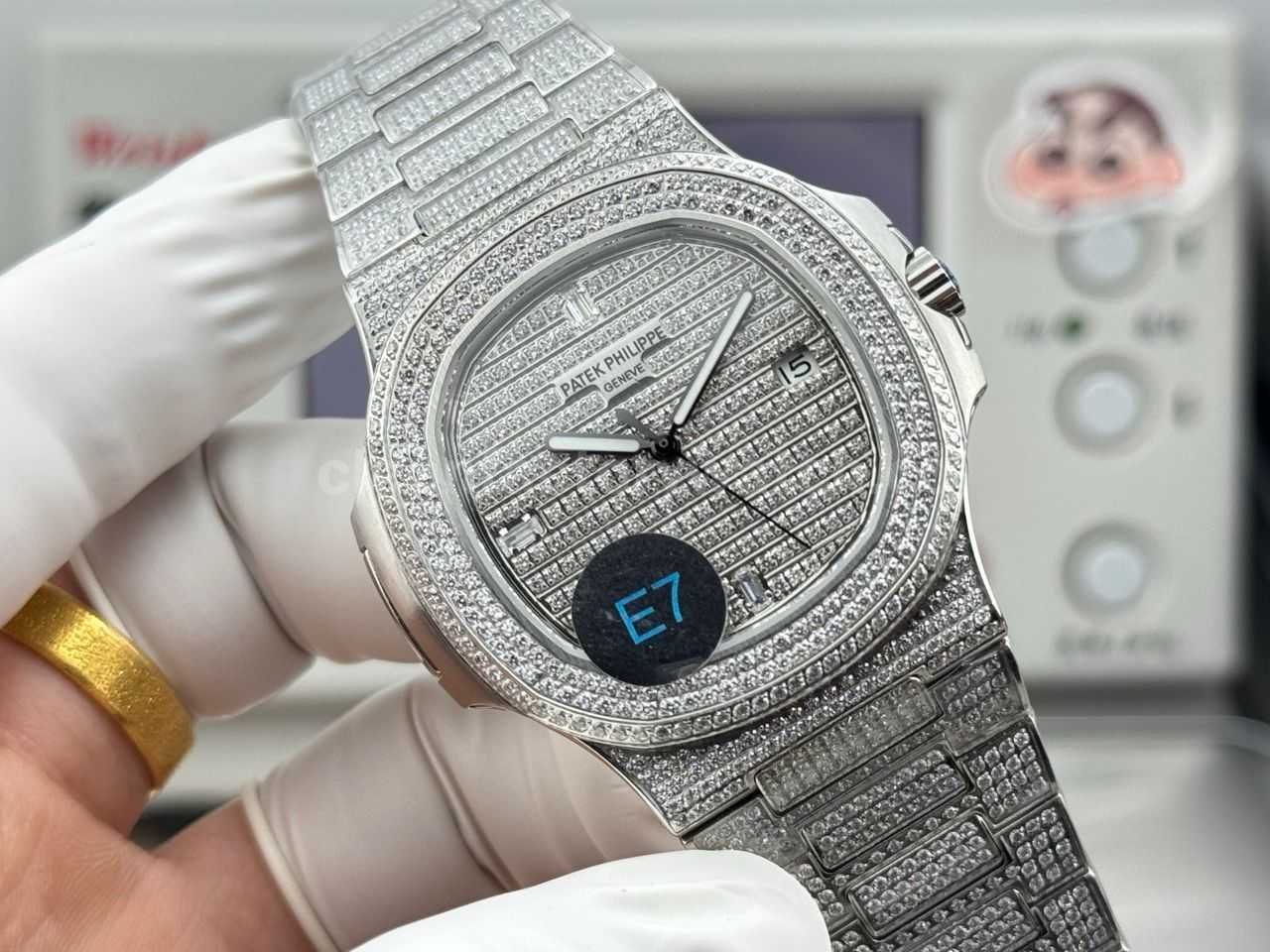 6. What really decides whether this E7 full-diamond 5711 is convincing is not the number of stones, but whether the case, bracelet, thinness, and overall watch feel still make sense together