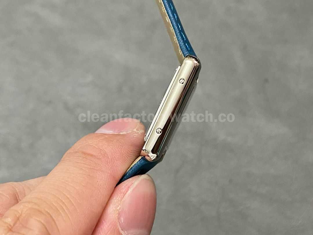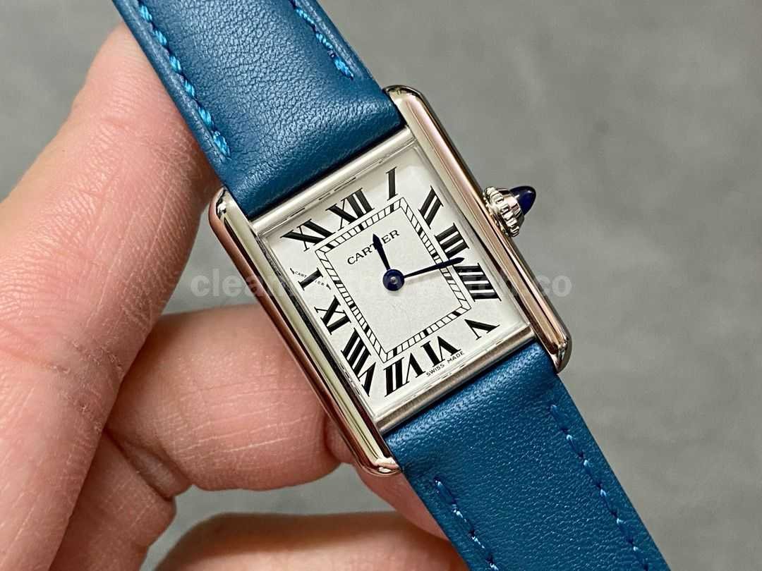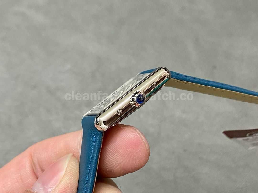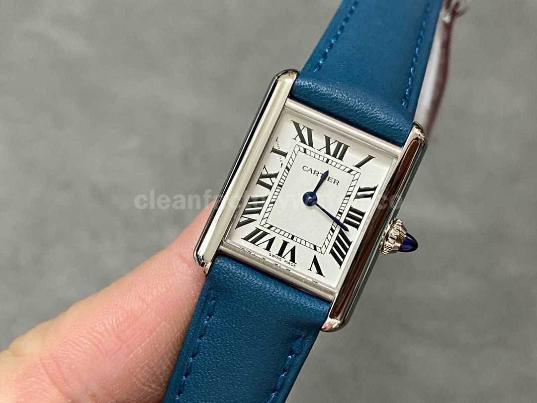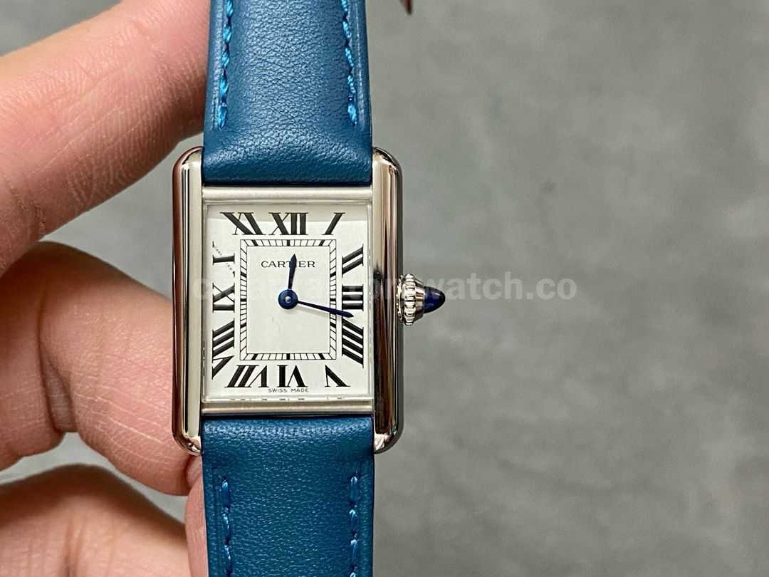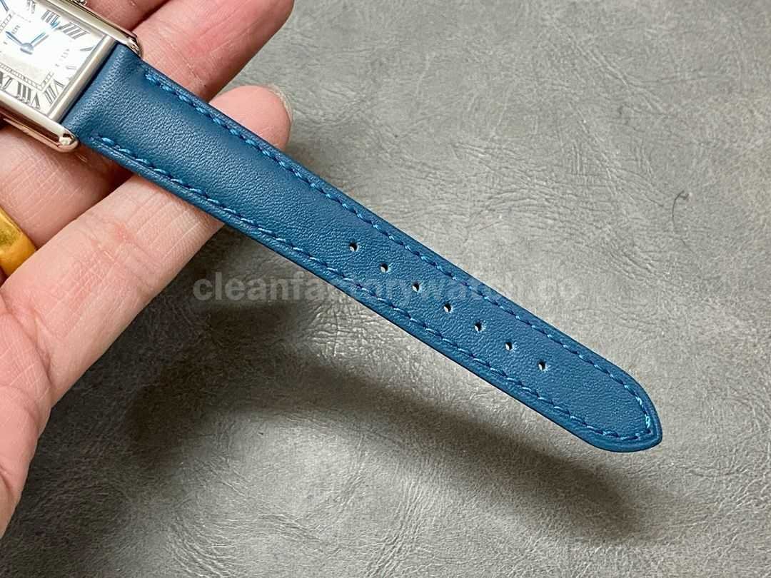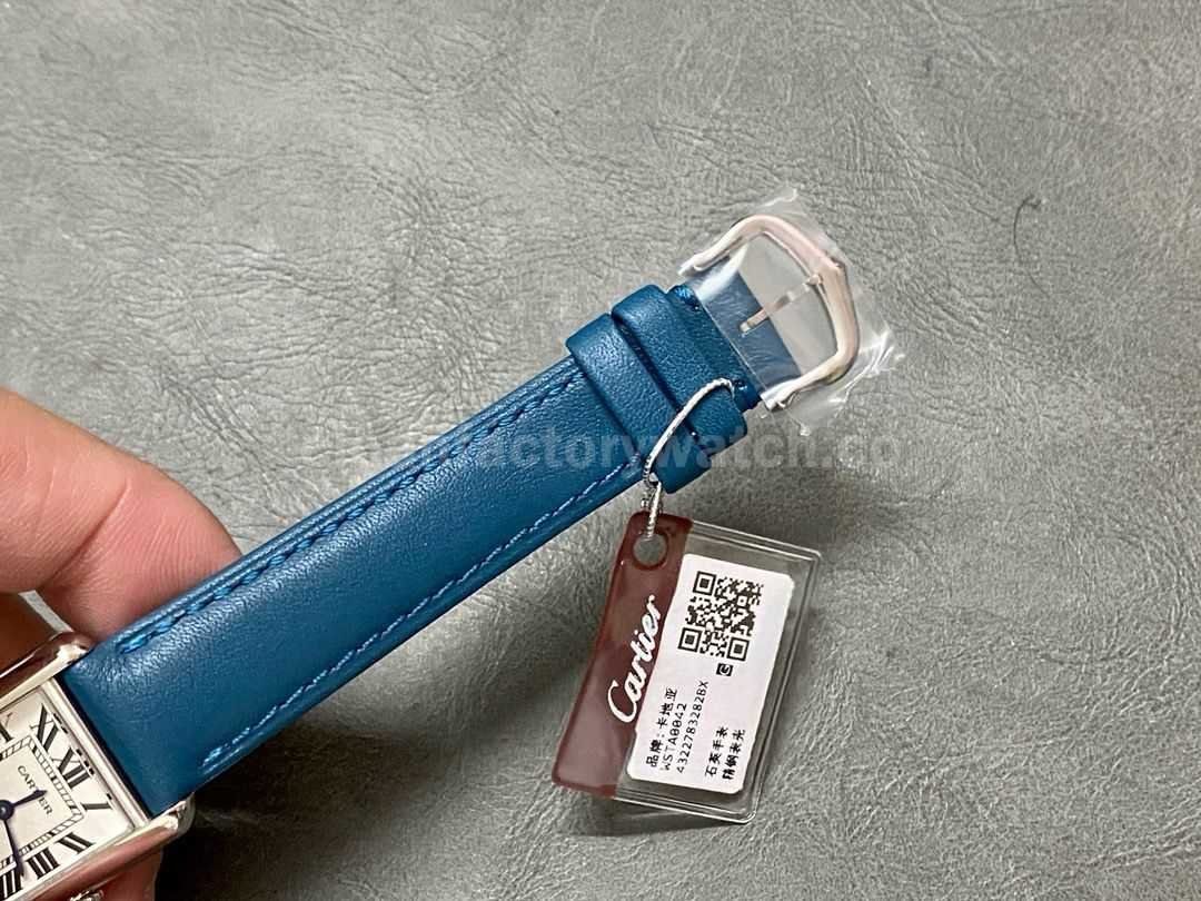 F1 Factory Cartier Tank Louis Cartier WSTA0042 22mm Steel Blue Leather Strap Roman Numerals Silver Dial