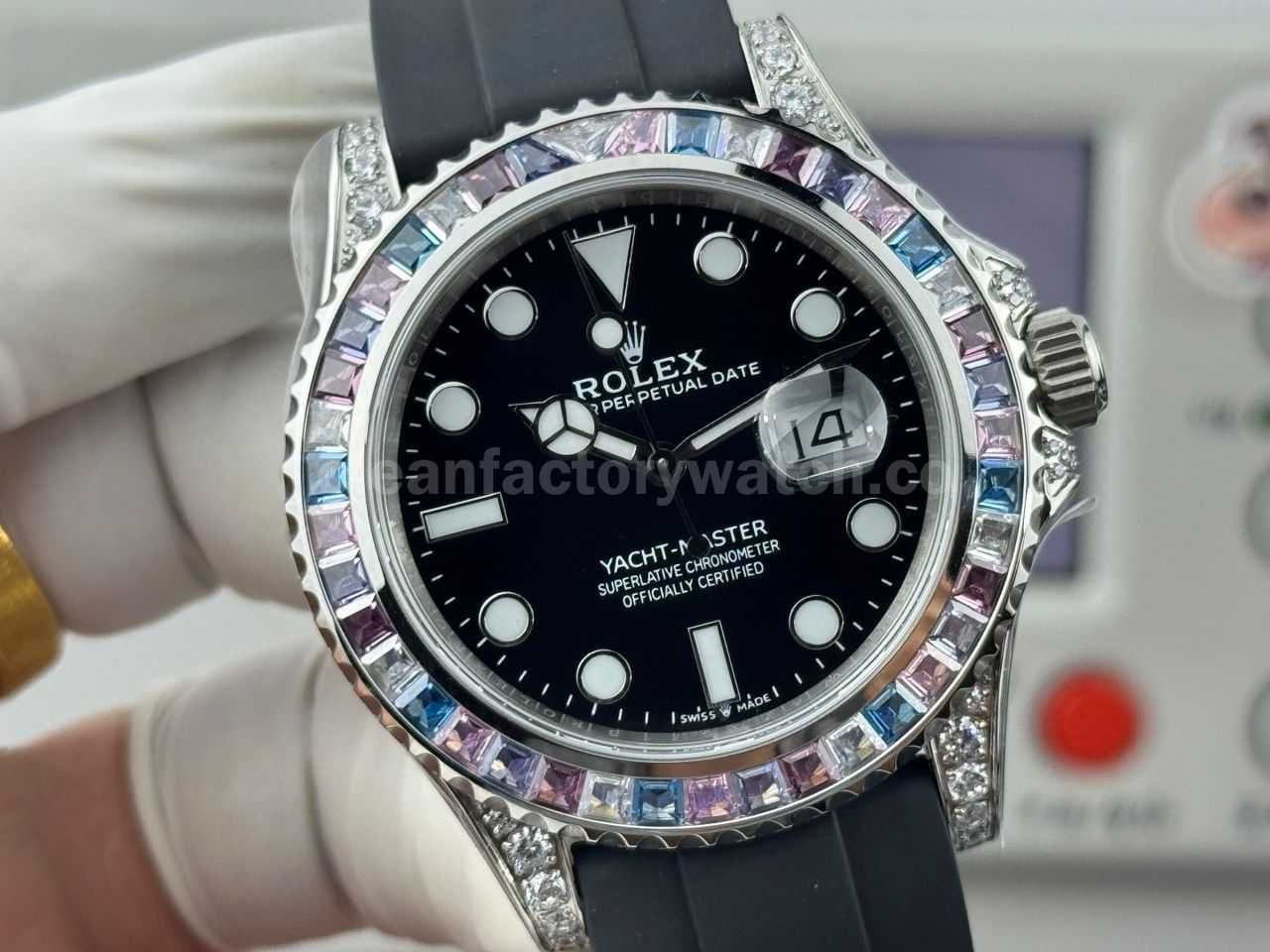 FH Factory Counterweight Rolex Yacht-Master 126679SABR-0002 40mm White Gold Oysterflex Diamond Bezel Black Dial