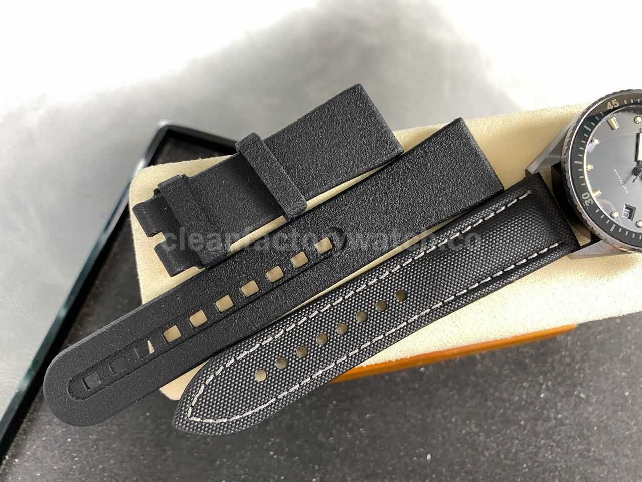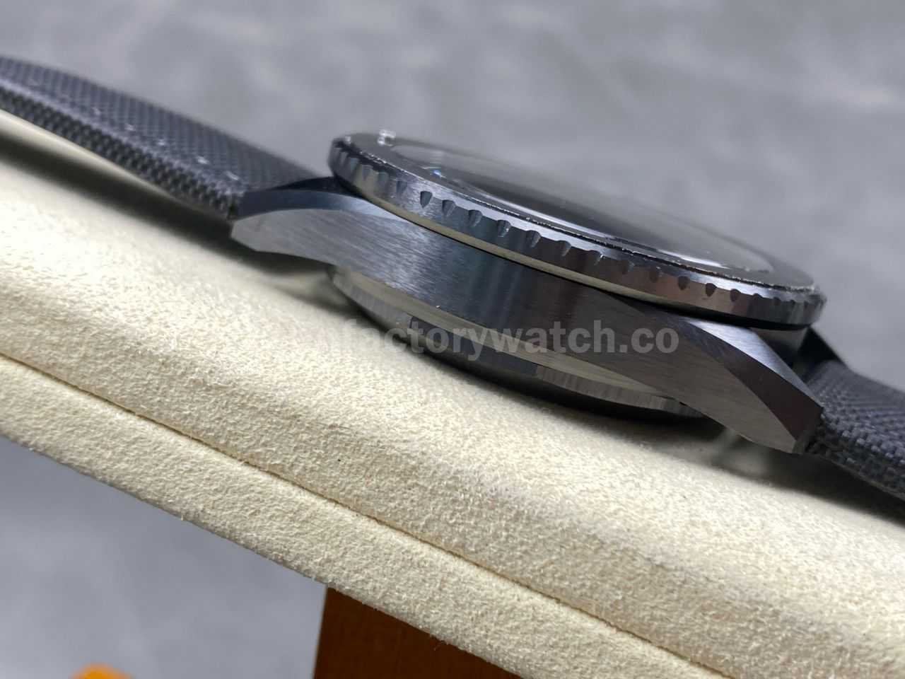This Blancpain Fifty Fathoms homage by GFF Factory features a high-tech matte grey ceramic case that exudes a refined sheen and premium texture. The material is highly durable—resistant to wear, discoloration, and stains—while remaining lightweight and skin-friendly. With a case design closely matching the original, this timepiece stands out as one of the most faithful and high-quality replicas currently on the market.