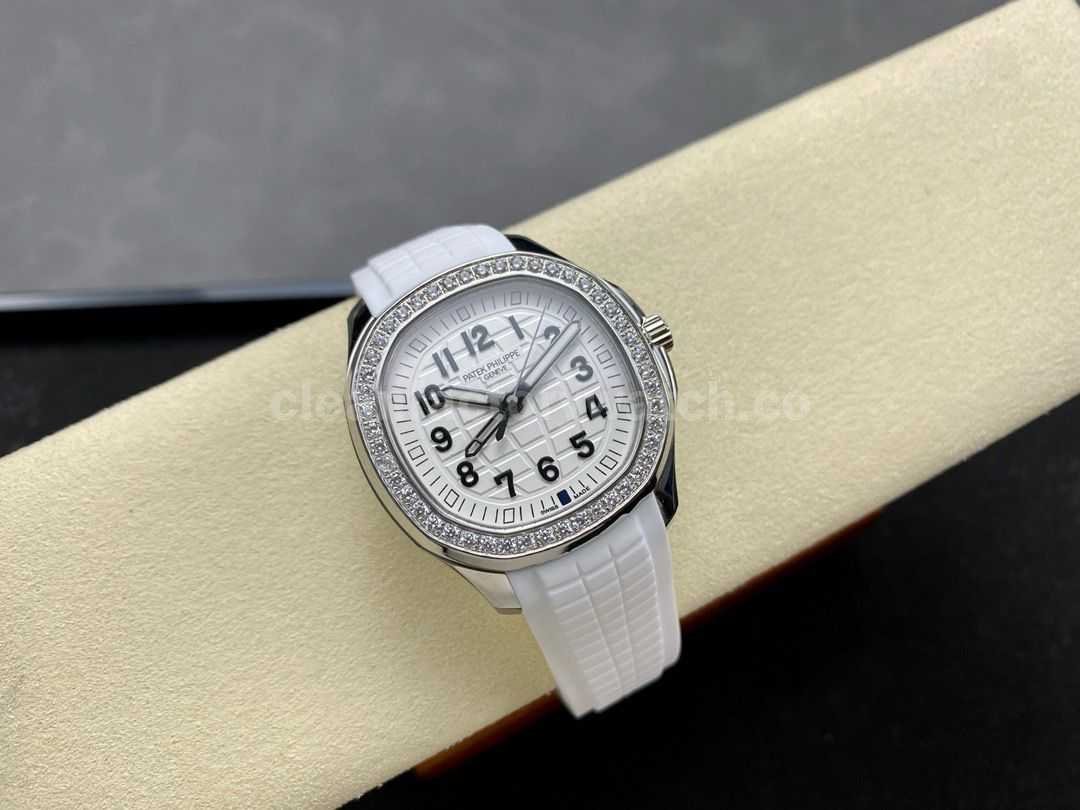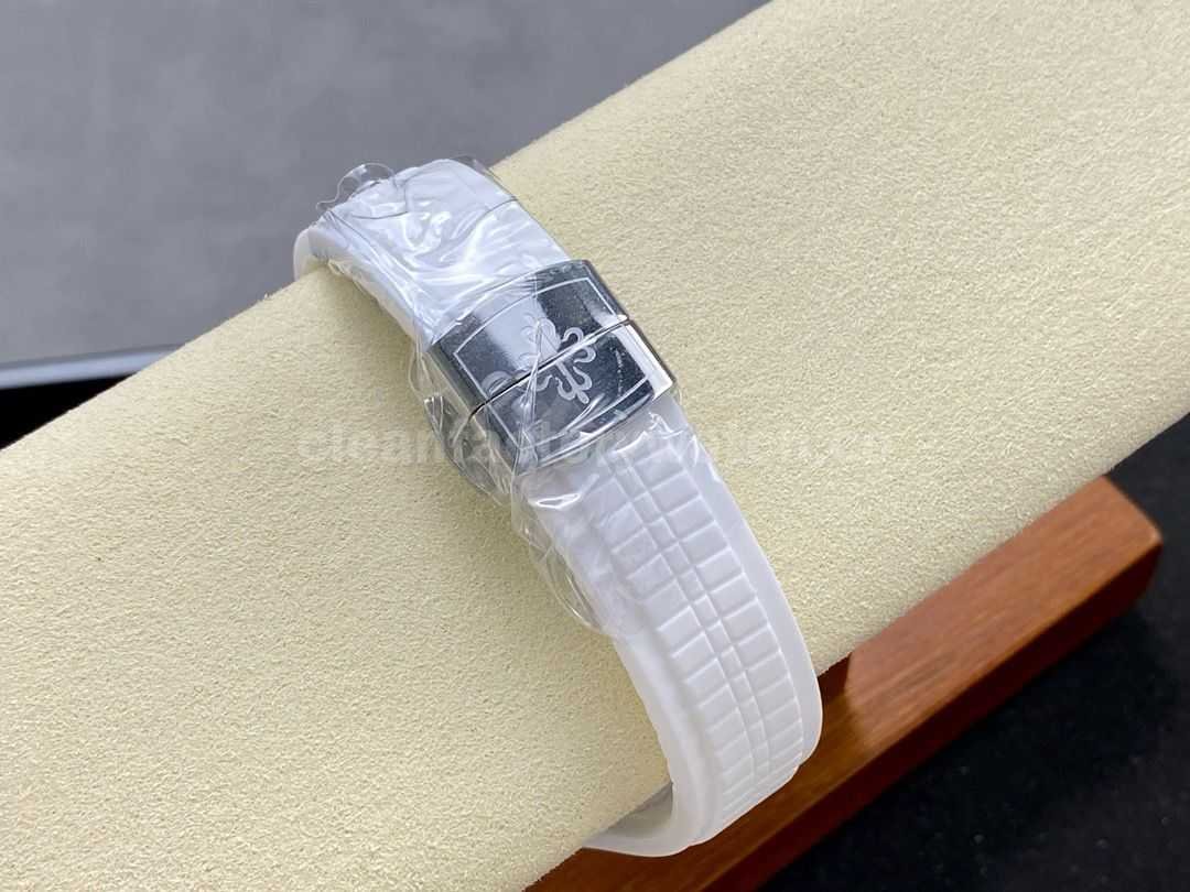 GR Patek Philippe Aquanaut Luce5269 series, Italian for “light”, has a reinterpreted modern casual fashion style shape, using a polished and sandblasted CNC-engraved round octagonal aesthetic case, with an elegant temperament. The 48 diamonds that light up its frame are decorated with stainless steel and satin and paired with a one-piece integrated composite strap to achieve its unique charm! The exclusive customized 9015 movement changed to CAL.324 movement and the embossed pattern text are a classic extension of Aquanaut, integrating modern casual fashion and elegance. The matte pearl coating and the same color strap complement each other. 5269R is equipped with a new size of 38.8mm to fit the hand more perfectly. The original and latest folding clasp is exclusively customized and fixed with four independent locks. Pay attention to the quality of the details!