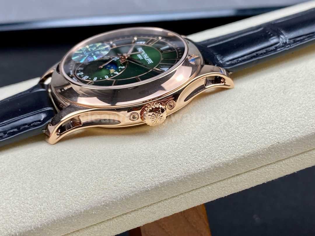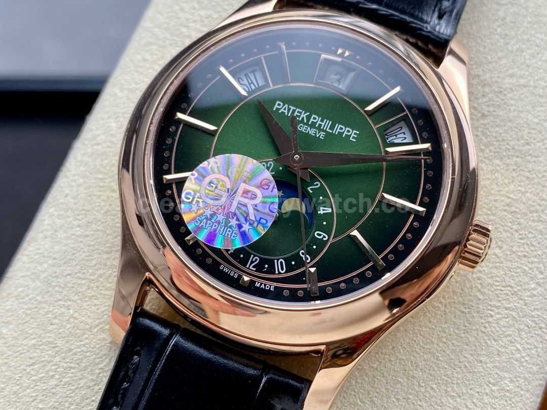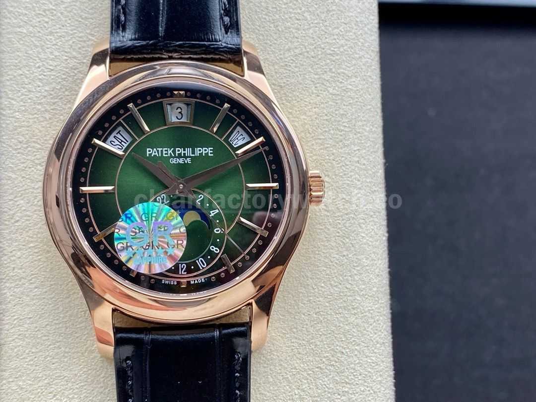 GR Factory Patek Philippe Annual Calendar 5205R-011 40mm Rose Gold Leather Strap Green Dial