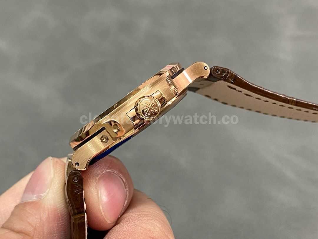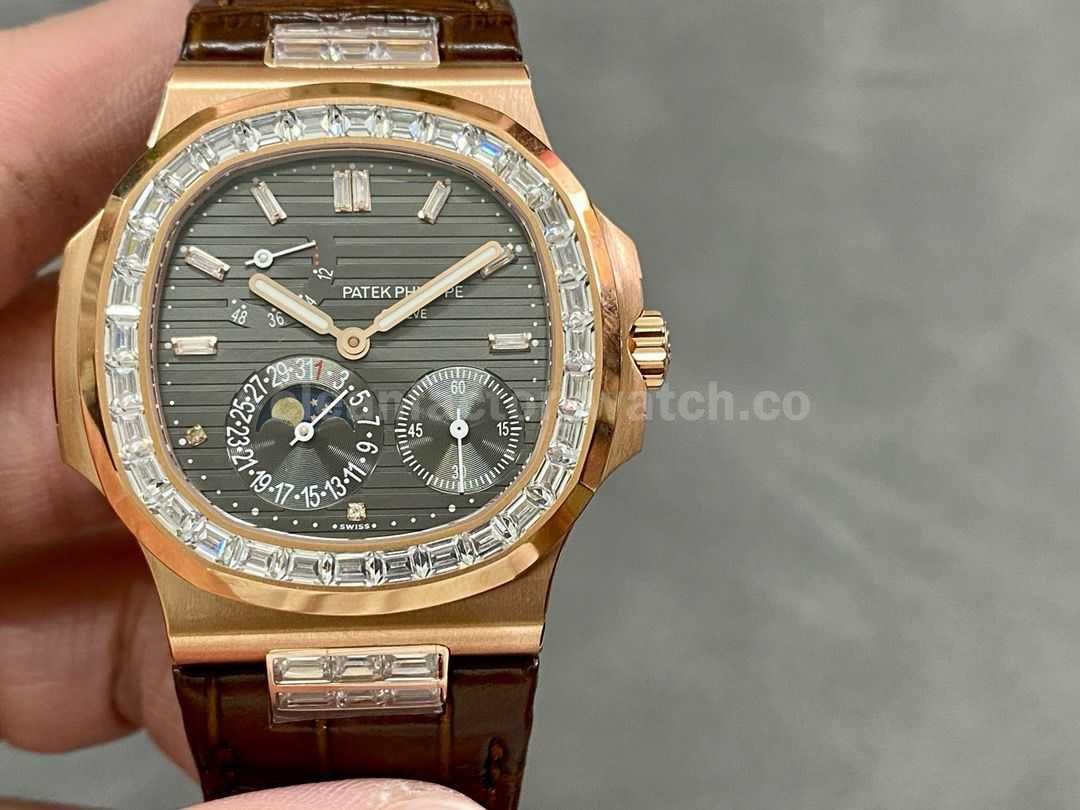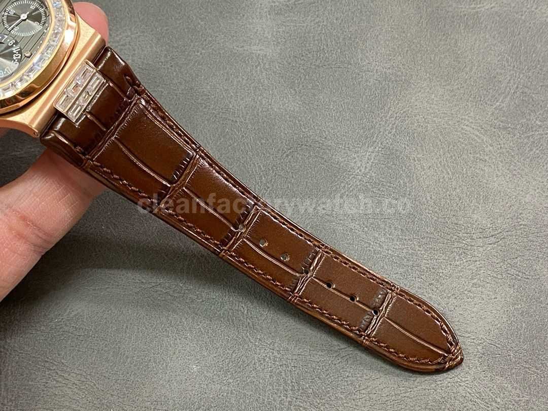 GR Factory Patek Philippe Nautilus 5712G Diamond Bezel Rose Gold Leather Strap Grey Dial