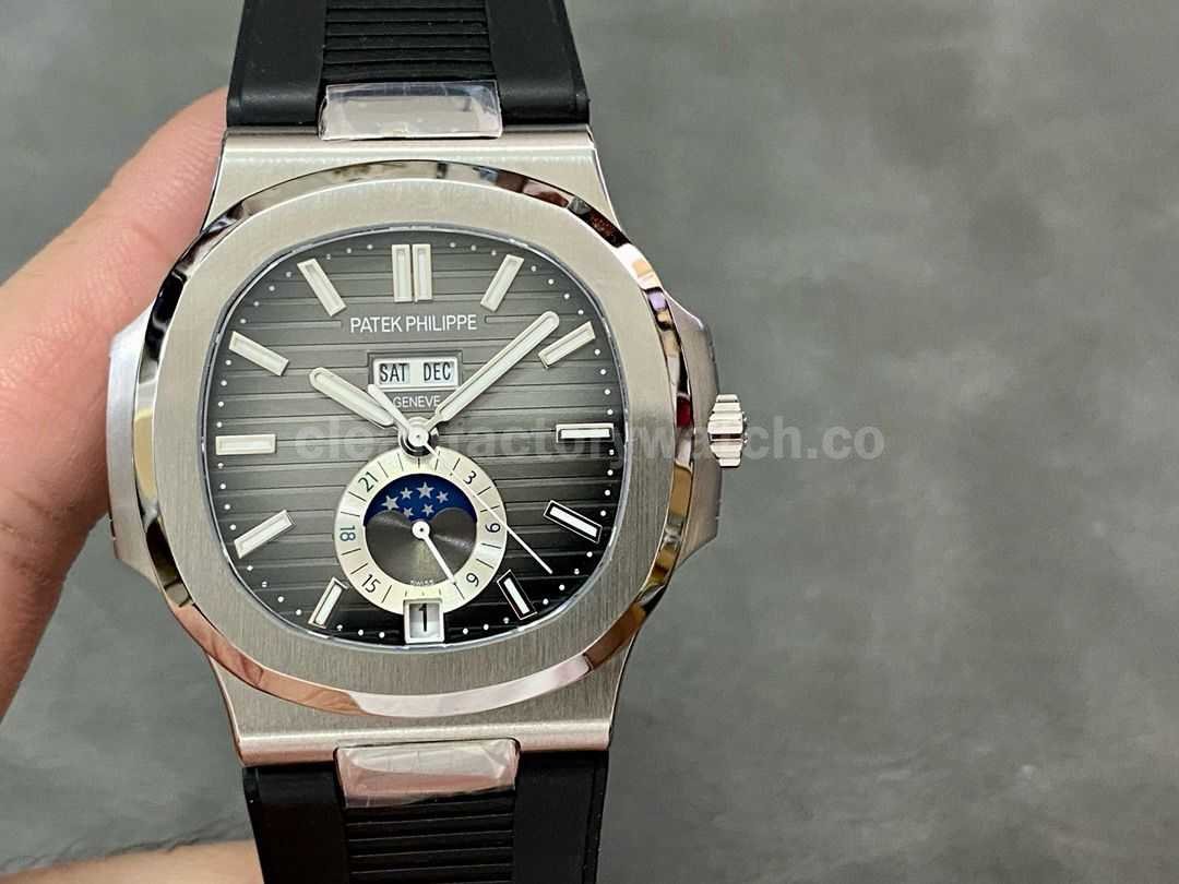 GR Factory Patek Philippe Nautilus 5726 Steel Black Rubber Strap Grey Dial