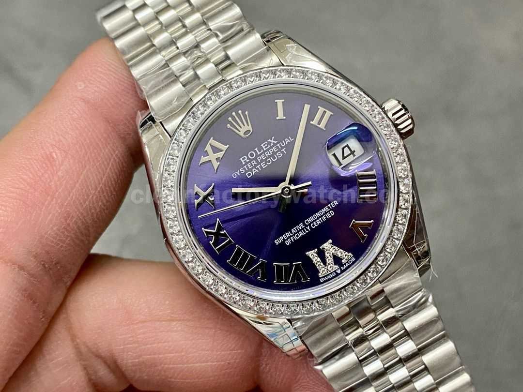 GS Factory Rolex Datejust 278384RBR-0030 31mm Diamond Bezel Roman Number&Diamond Aubergine Purple Dial Jubilee