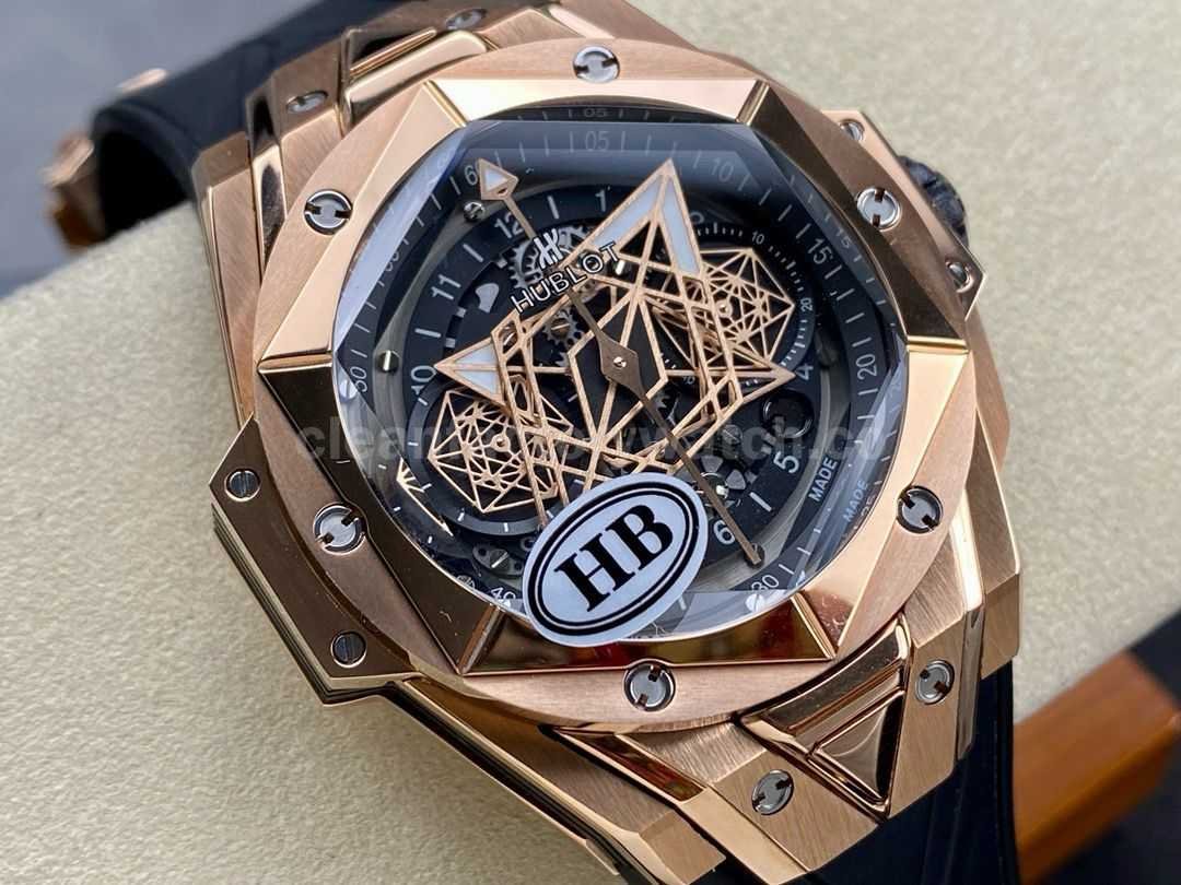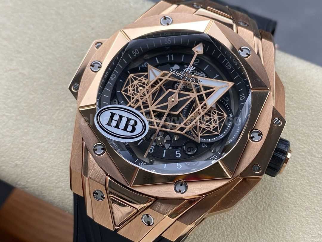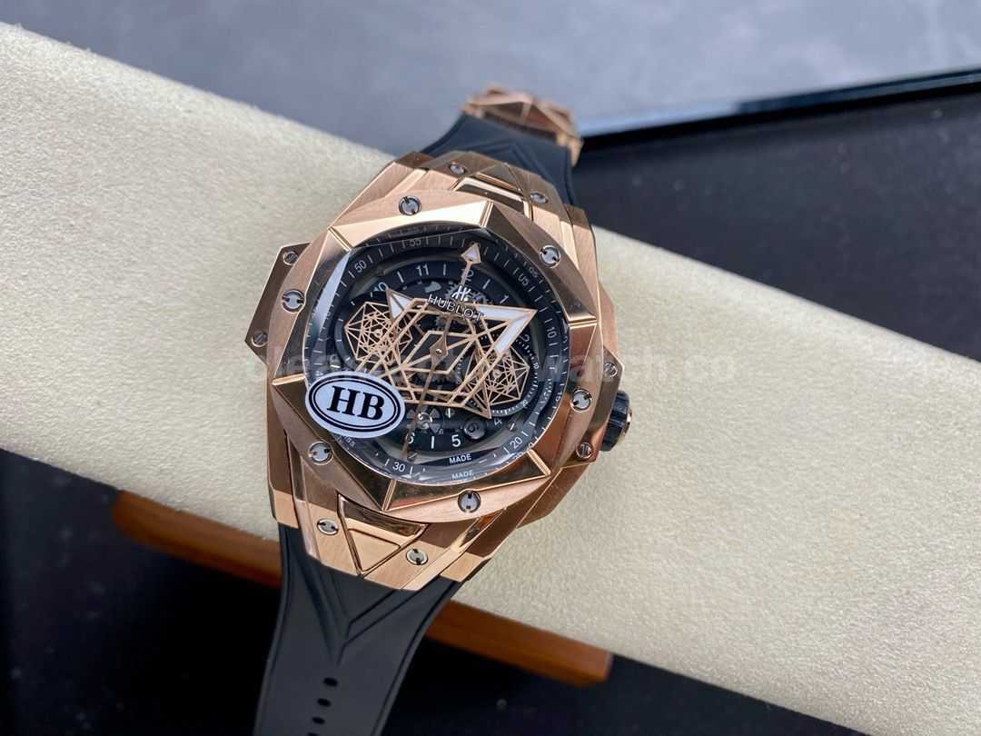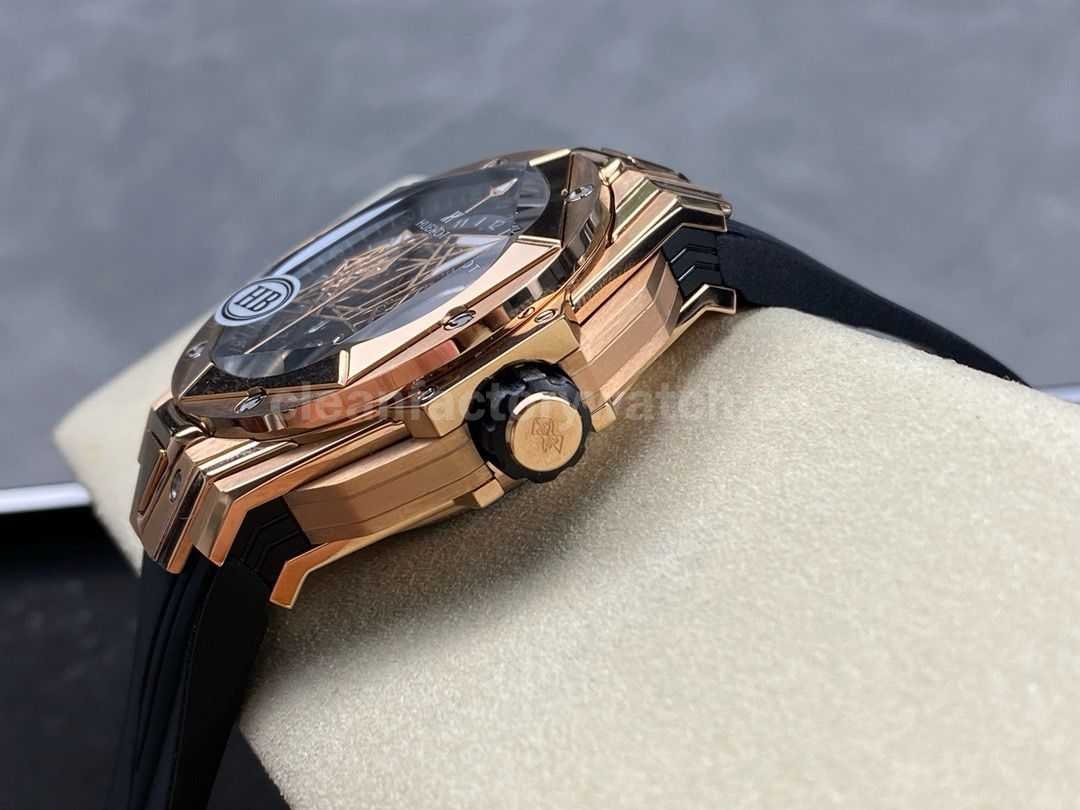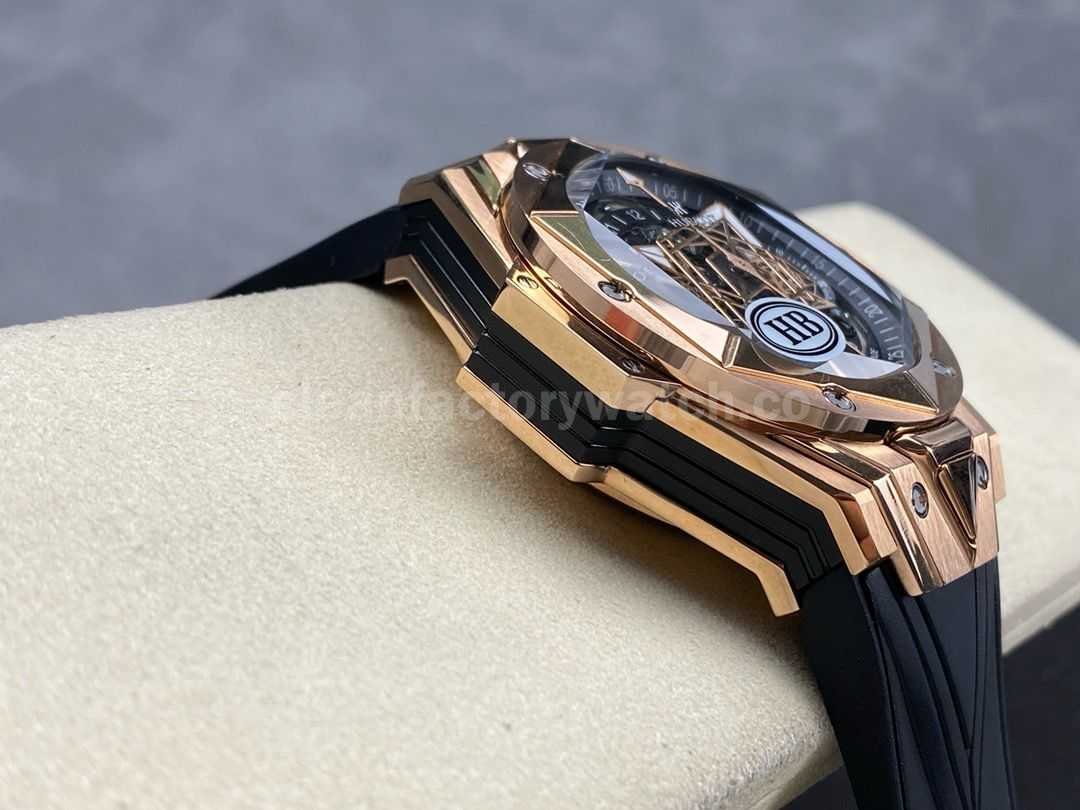 HB Factory Hublot Big Bang Sang Bleu 418.OX.1108.RX.MXM19 45mm Rose Gold Black Rubber Strap Skeletonized Black Dial