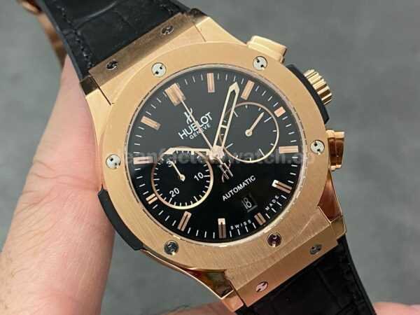 HB Factory Hublot Classic Fusion Chronograph 521.OX.1181.LR 45mm Rose gold Leather Strap Black Dial