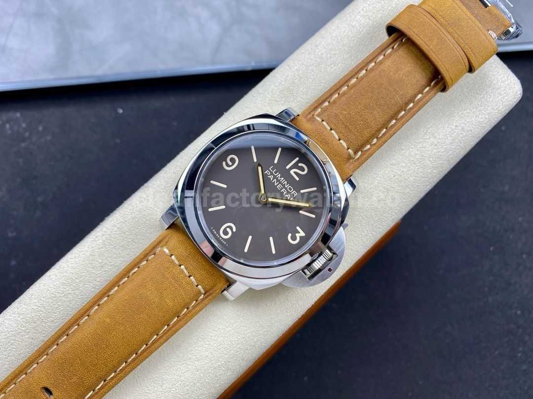 HW Factory Panerai Luminor Base PAM 00390 44mm Steel Leather Strap Arabic Numerals Brown Dial