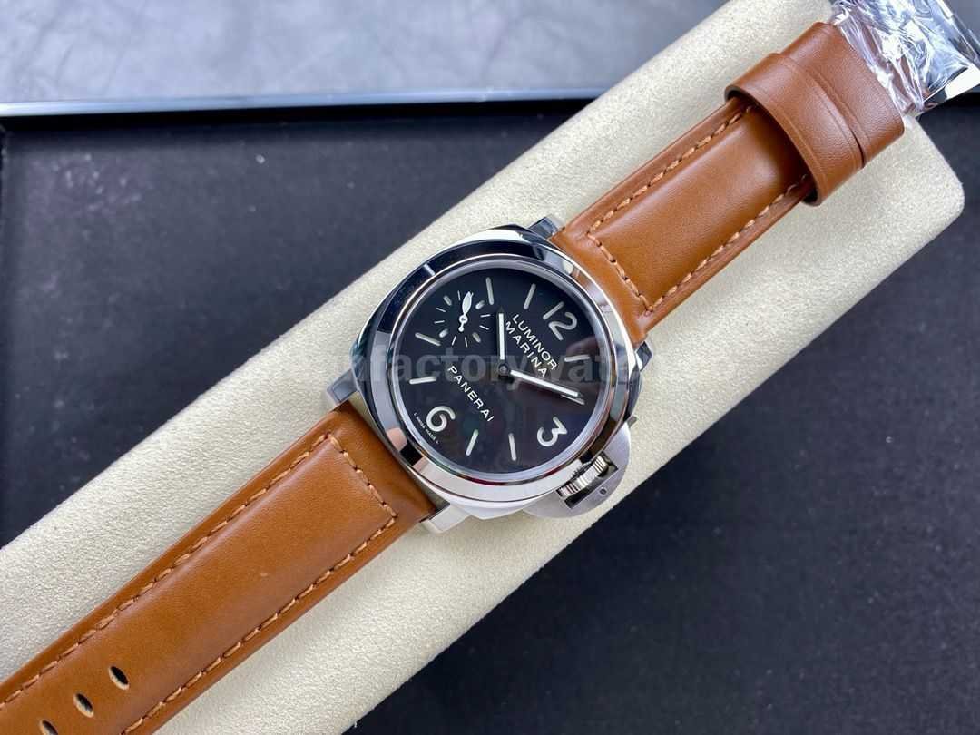 HW Factory Panerai Luminor Marina PAM 00111 44mm Steel Leather Strap Arabic Numerals Black Dial