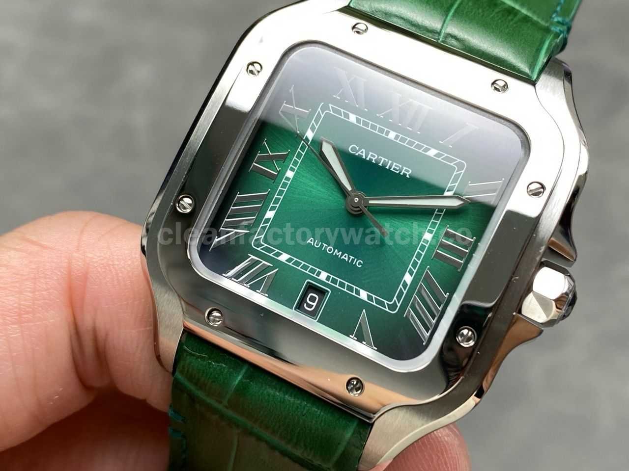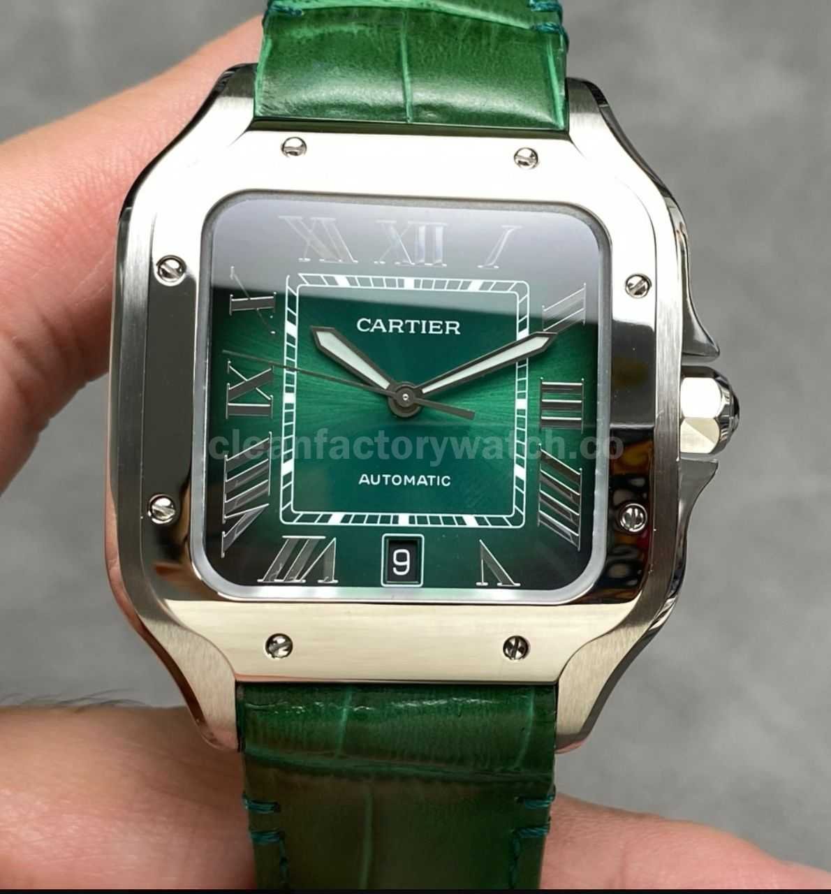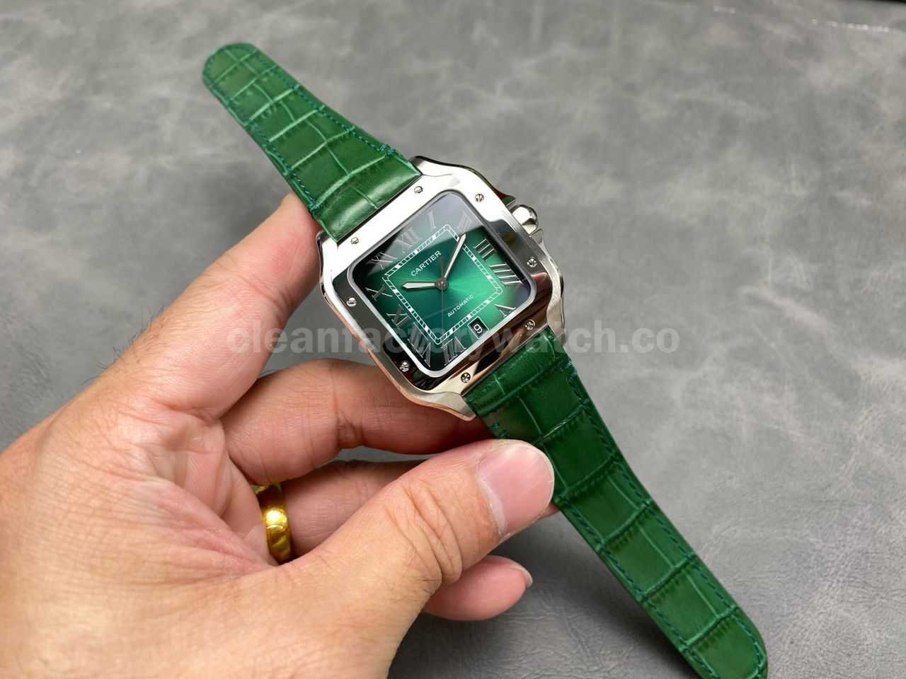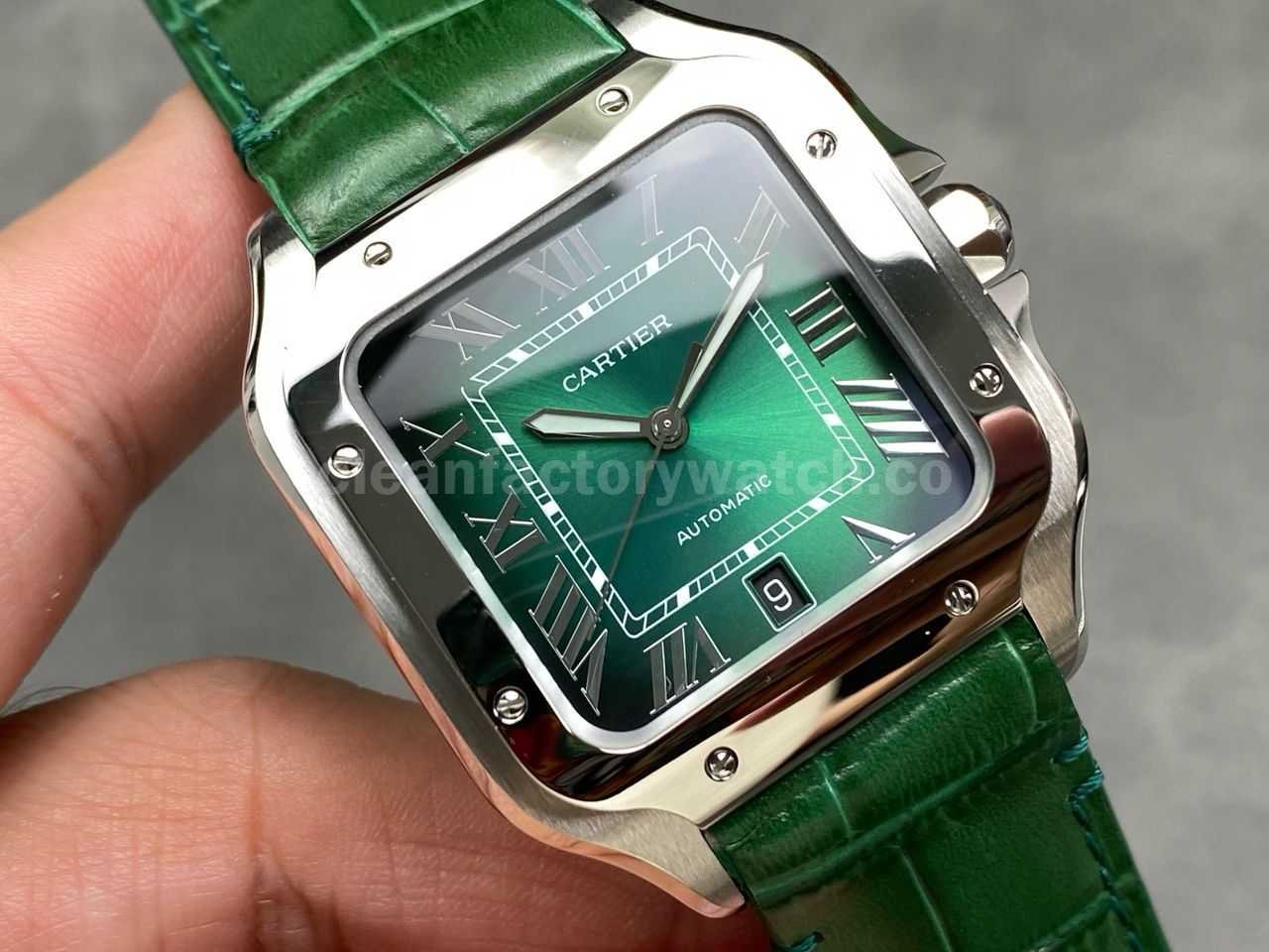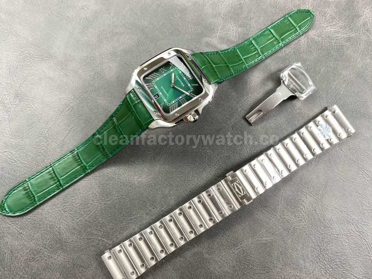 J12 Factory Cartier Santos WSSA0062 39.8mm Leather Strap Roman Numerals Green Dial