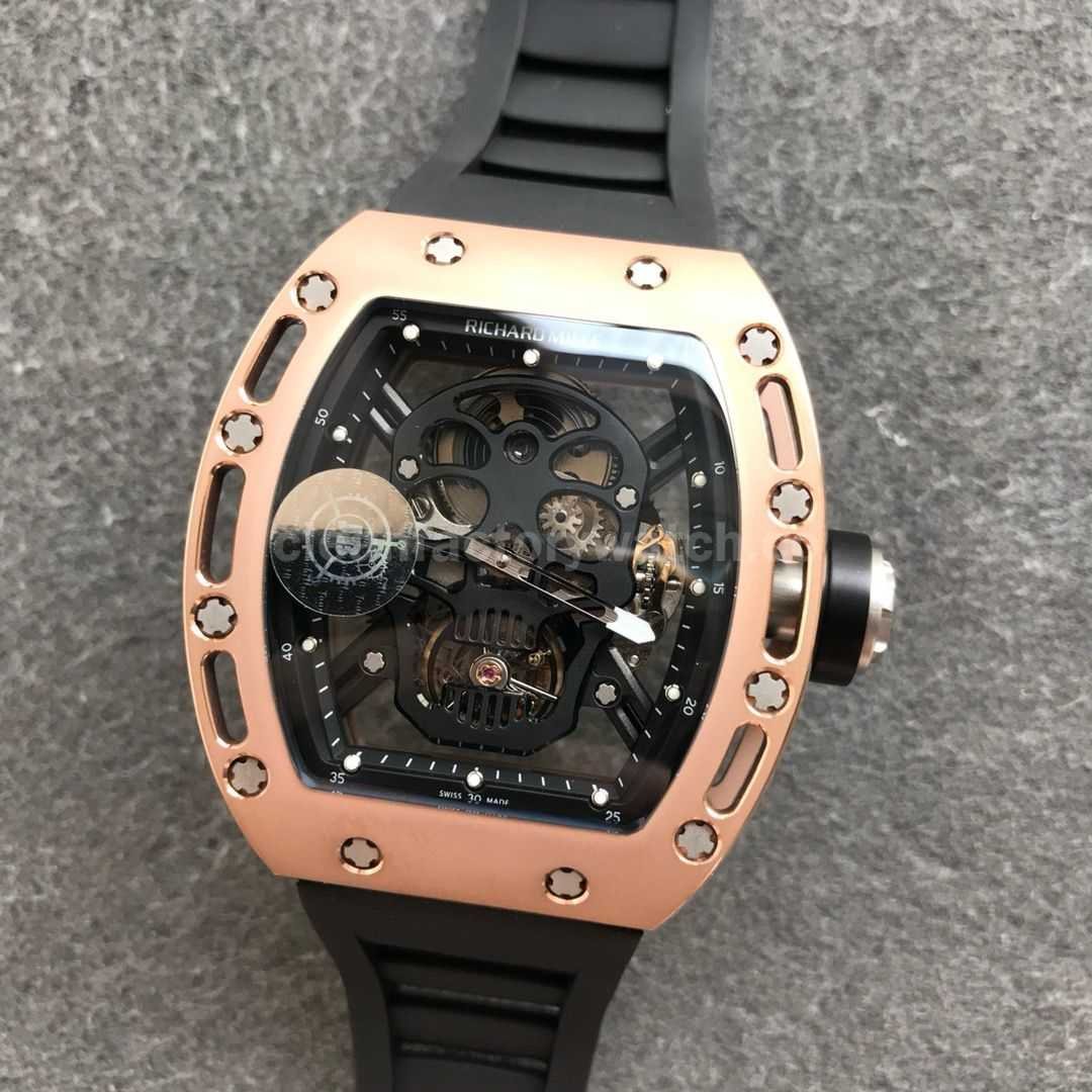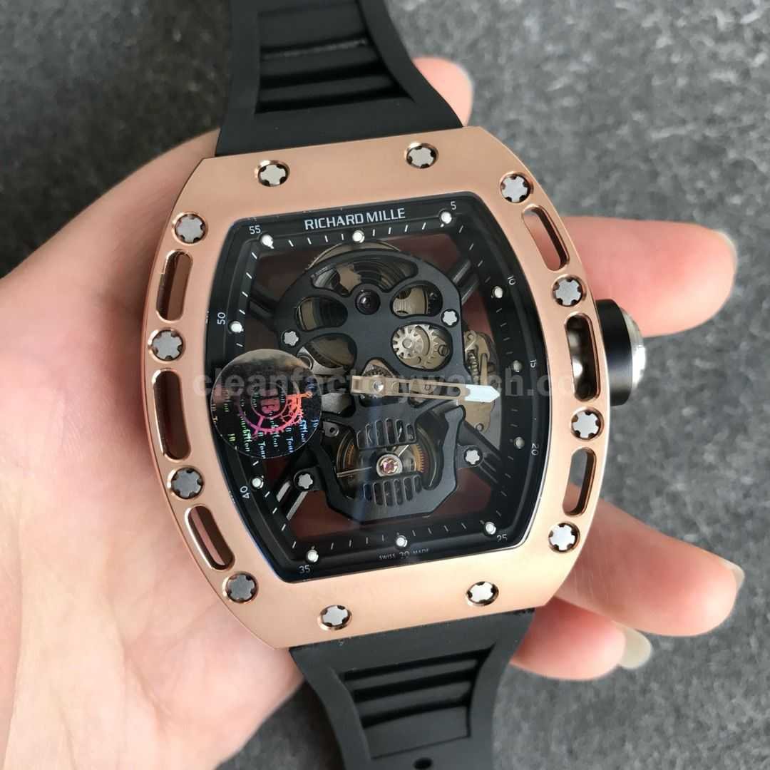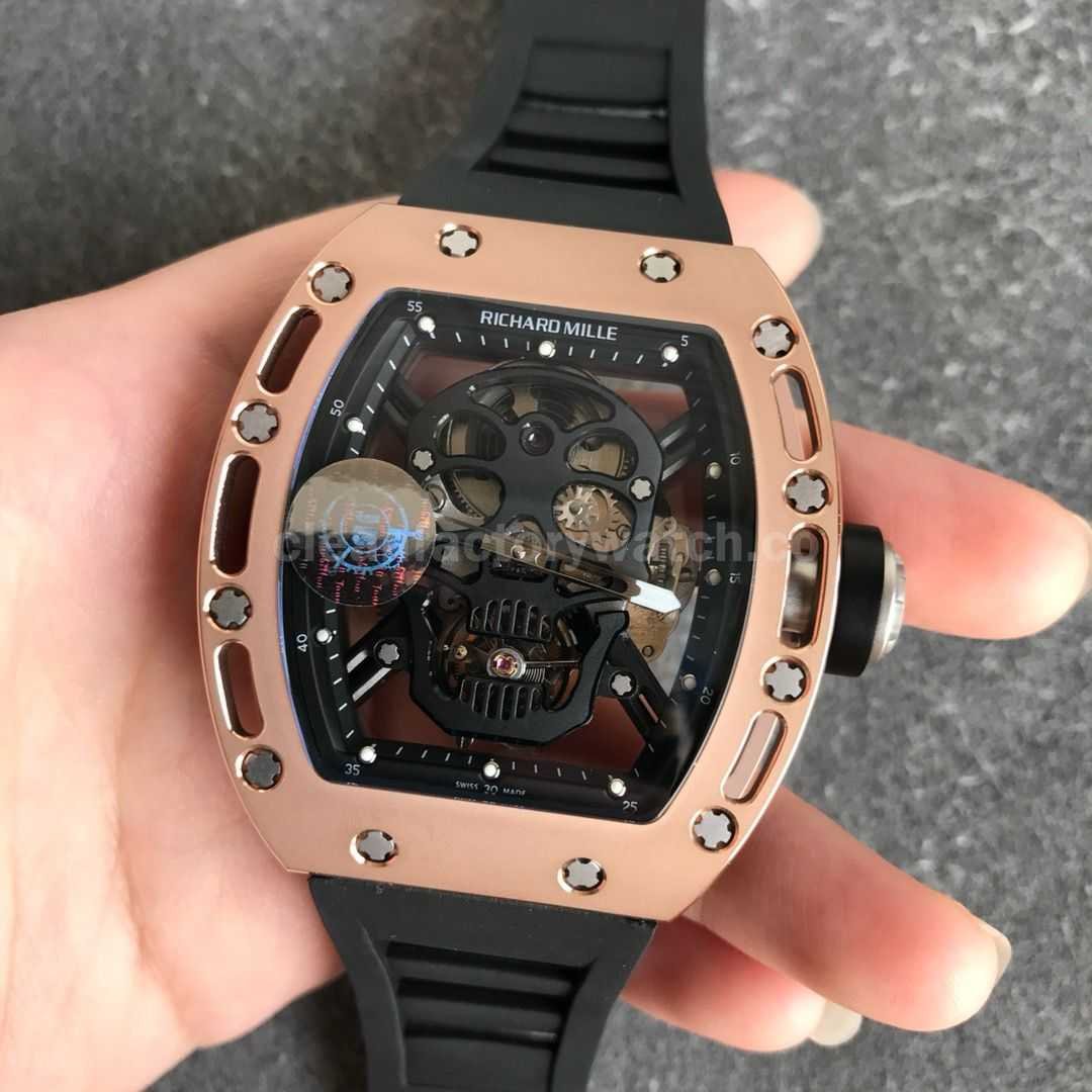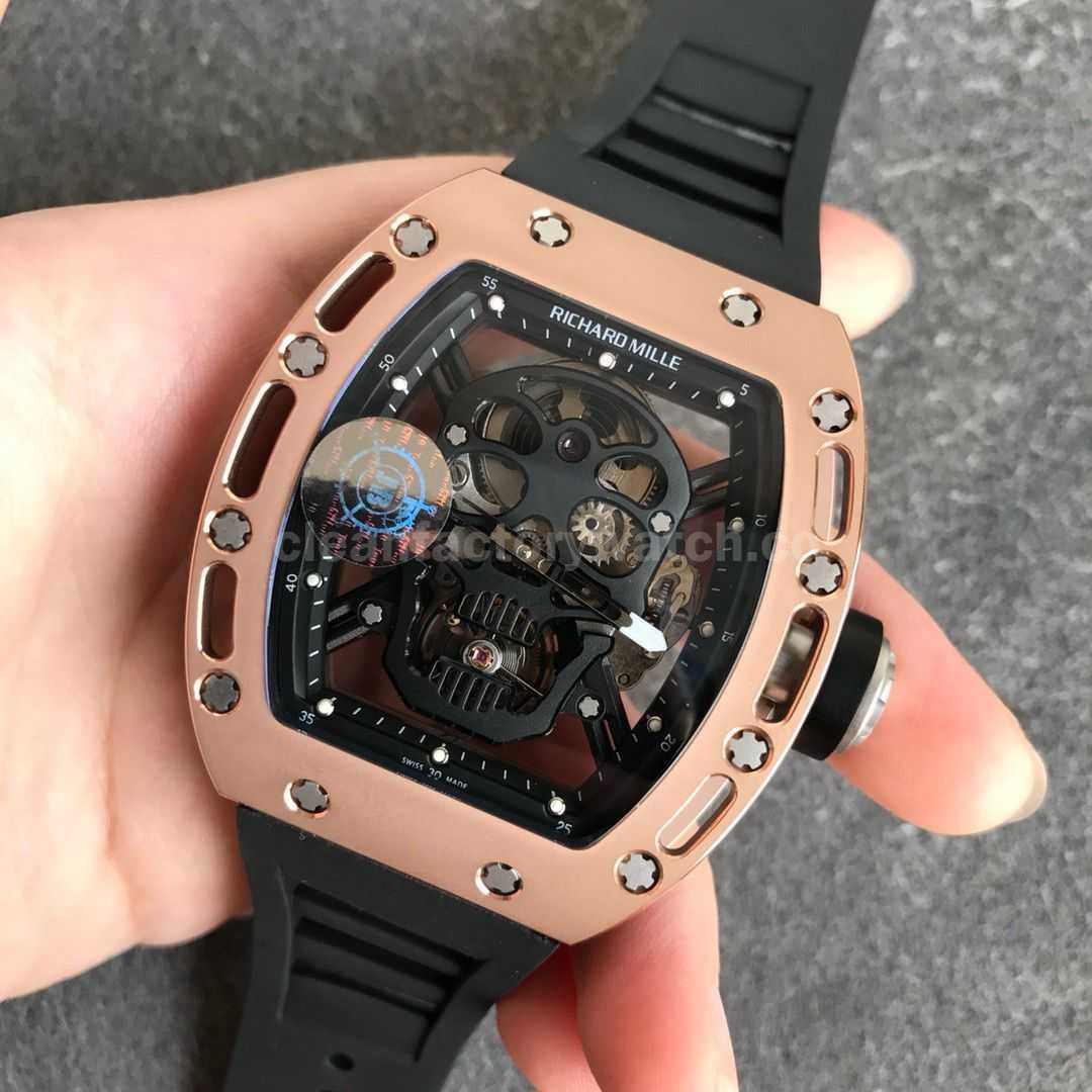 JB Factory Richard Mille RM52-01 Skull 44.3mm Rose Gold Titanium Black Rubber Strap Skeletonized Black Dial