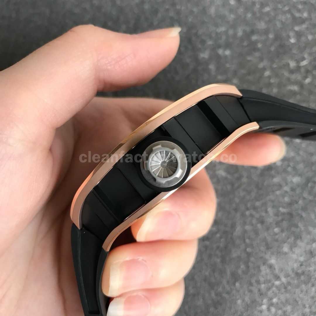 3. The details are in place: the left inner wall of the inner cover of the watch case is stamped with RM052 steel stamp like the original one, the size and depth of the right eye gear are close to the original one, the gem in the center of the forehead is ruddy and clear, the frosted buckle, and the rubber strap imported from Thailand;