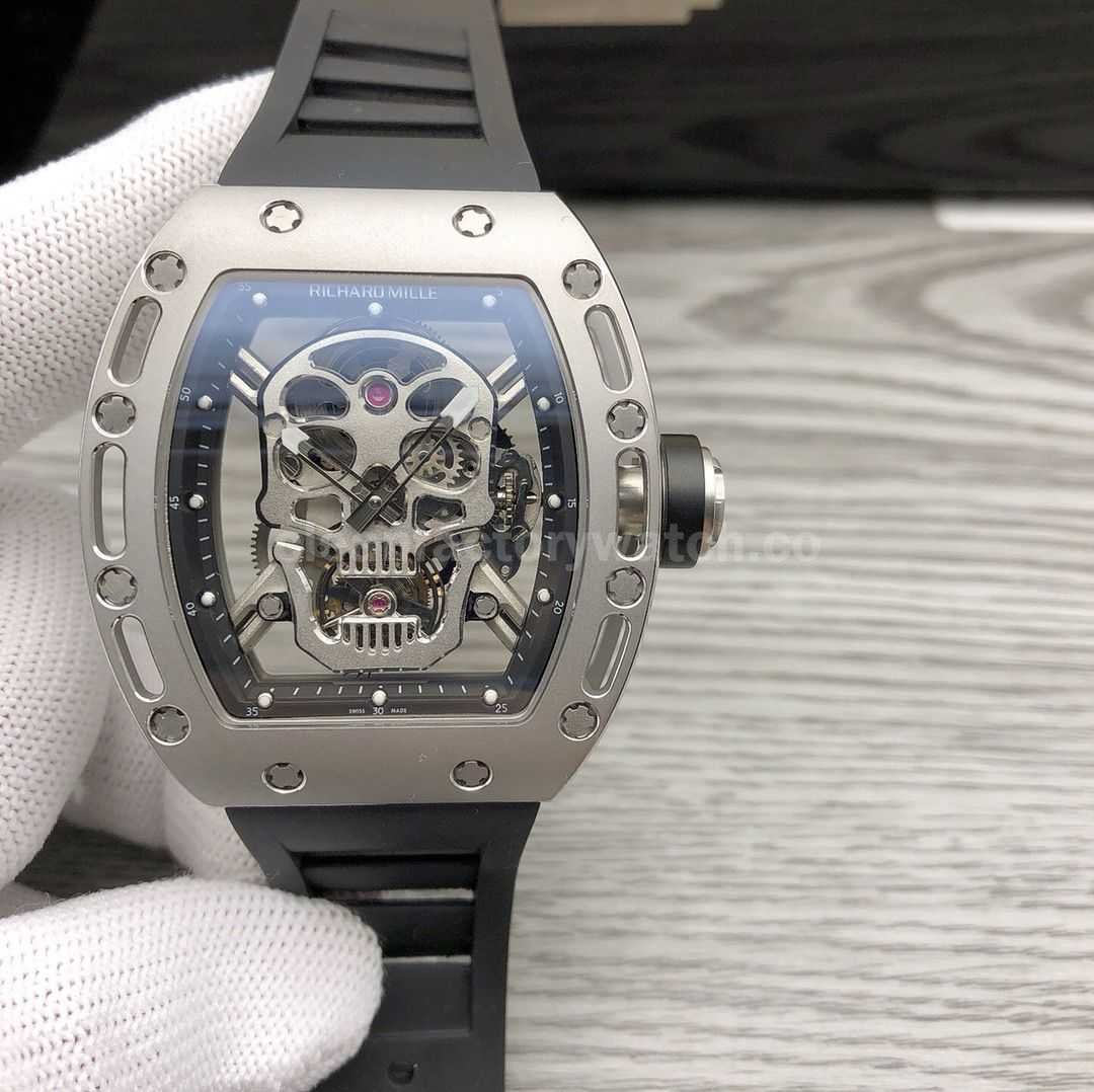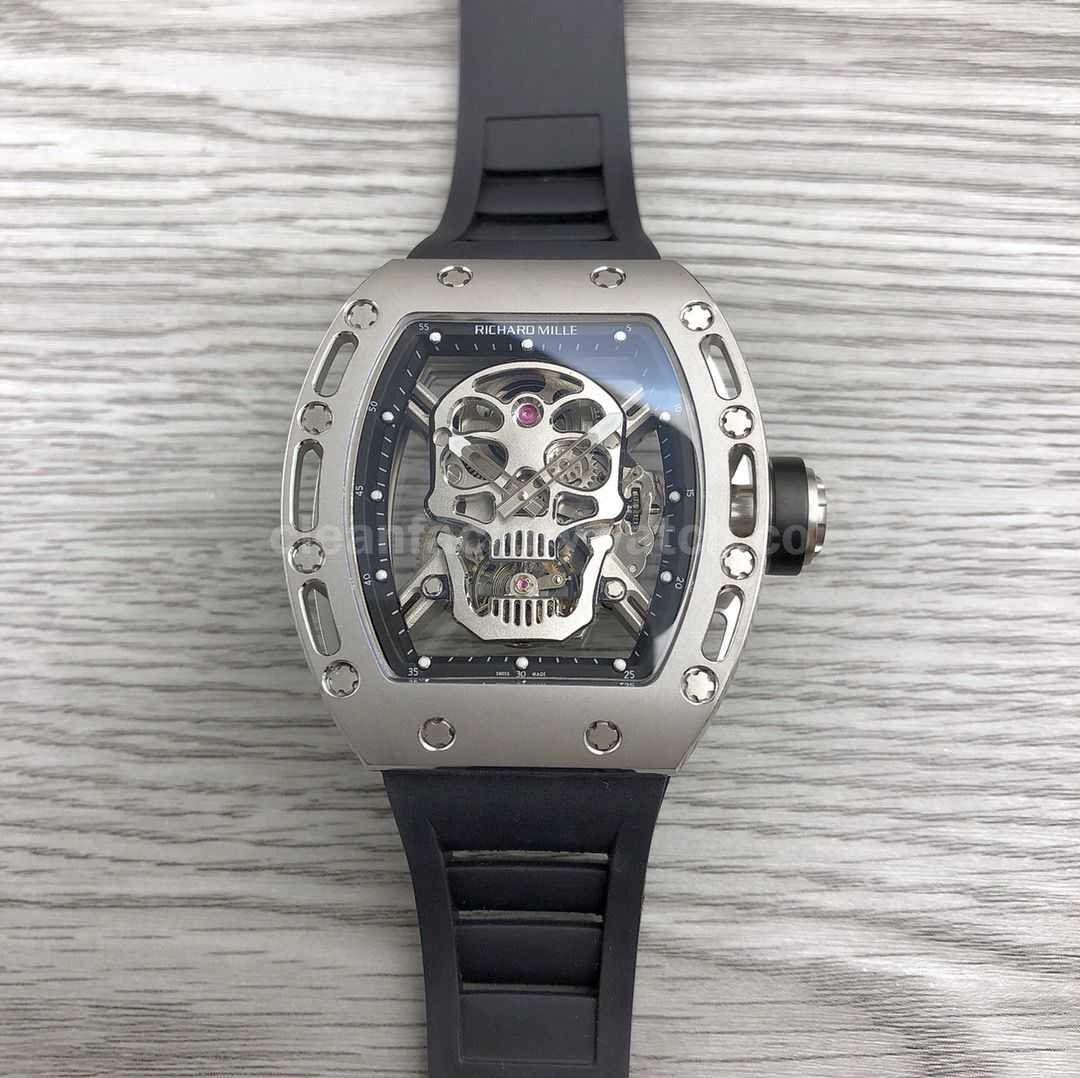 JB Factory Richard Mille RM52-01 Skull 44.3mm Titanium Black Rubber Strap Skeletonized Black Dial