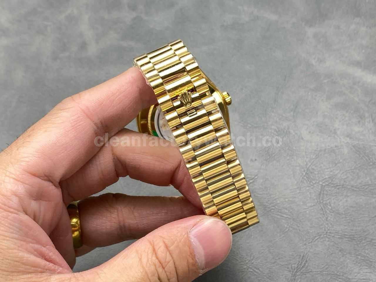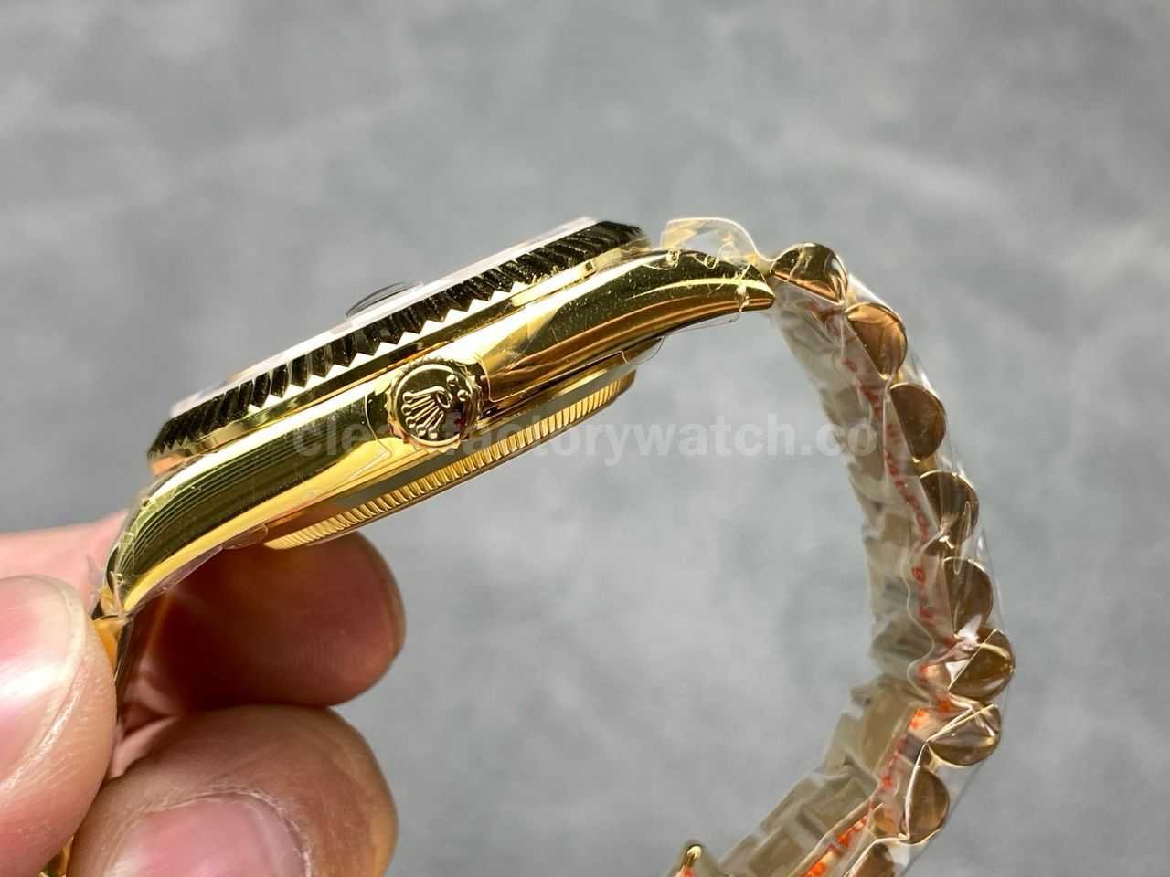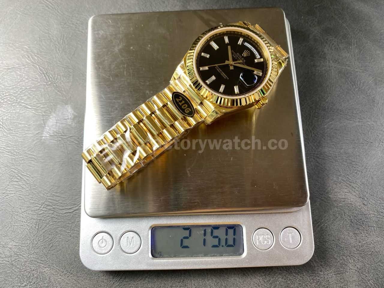 KF Factory Counterweight Rolex Day-Date 228238-0004 40mm Full Yellow Gold Diamond Baguette Black Dial