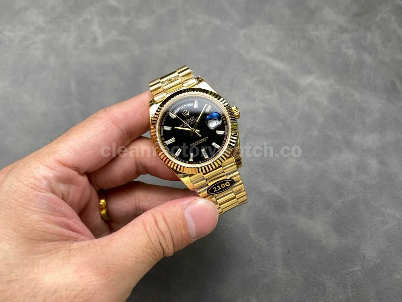 All the surprises – all come from continuous breakthroughs, another super copy in the history of cloning: Rolex DAY-DATE40 series – the full weight version of the official watch weighs about 215 grams
