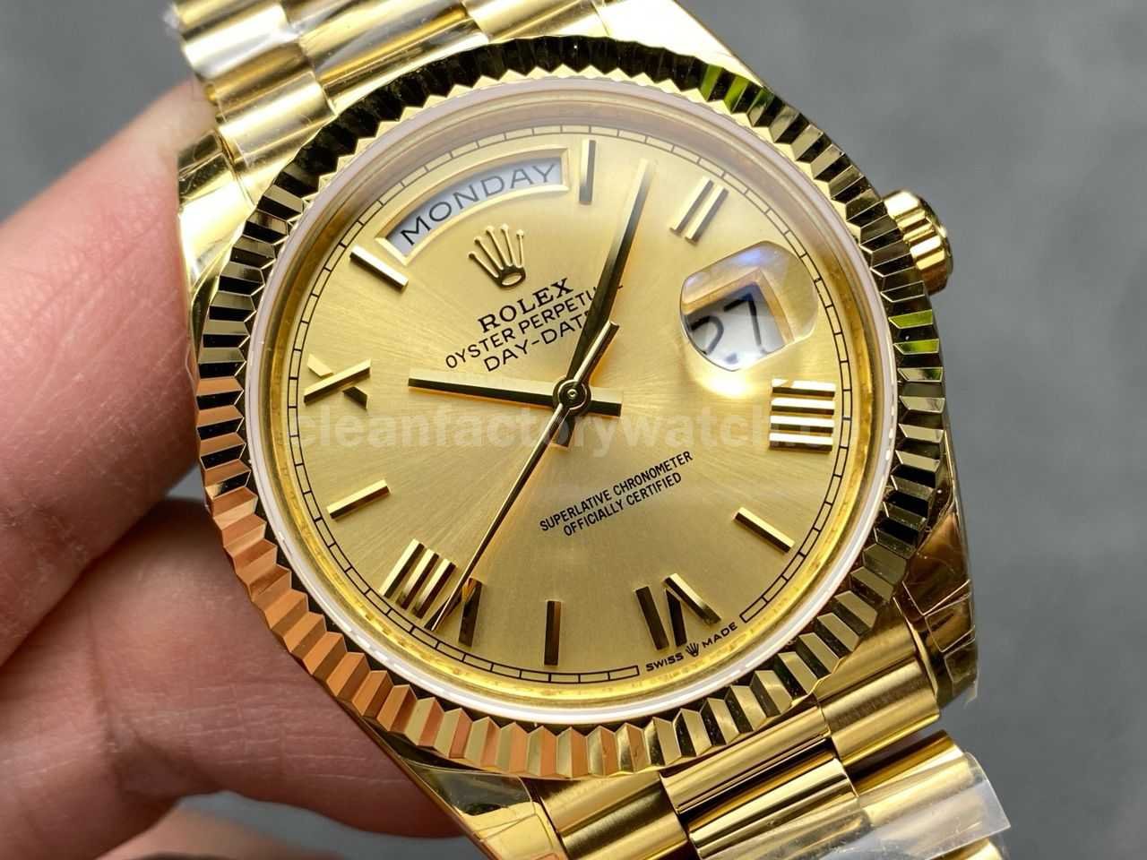 KF Factory Counterweight Rolex Day-Date 228238-0006 40mm Full Yellow Gold Roman Numerals Champagne Dial