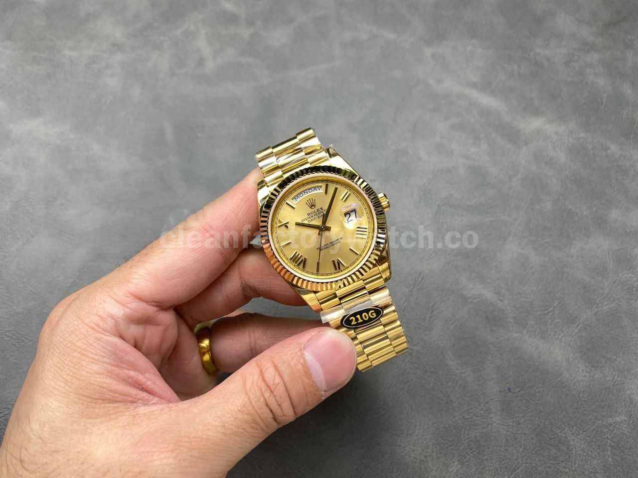 All the surprises – all come from continuous breakthroughs, another super copy in the history of cloning: Rolex DAY-DATE40 series – the full weight version of the official watch weighs about 215 grams