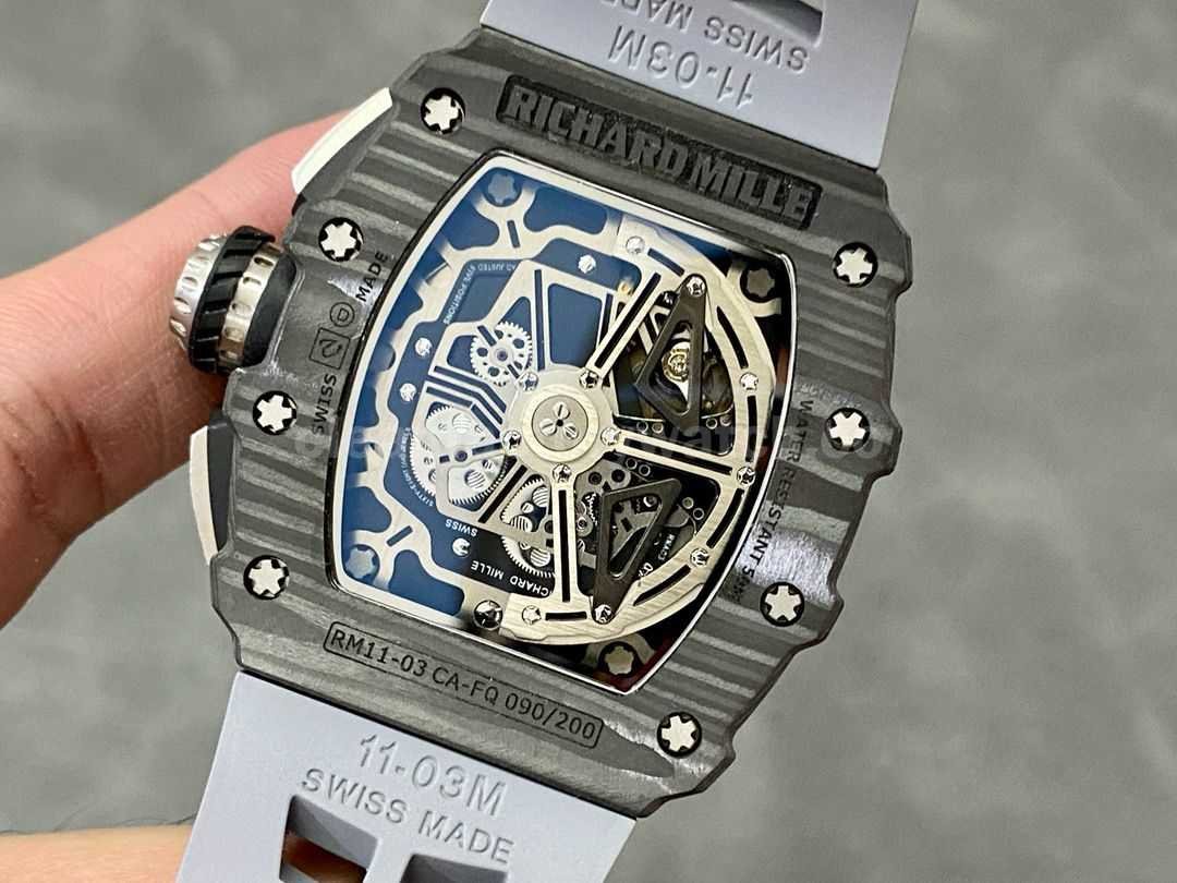 KV Factory Richard Mille RM011-03 44.5mm Carbon Fiber Grey Rubber Strap Arabic Numerals Skeletonized Dial