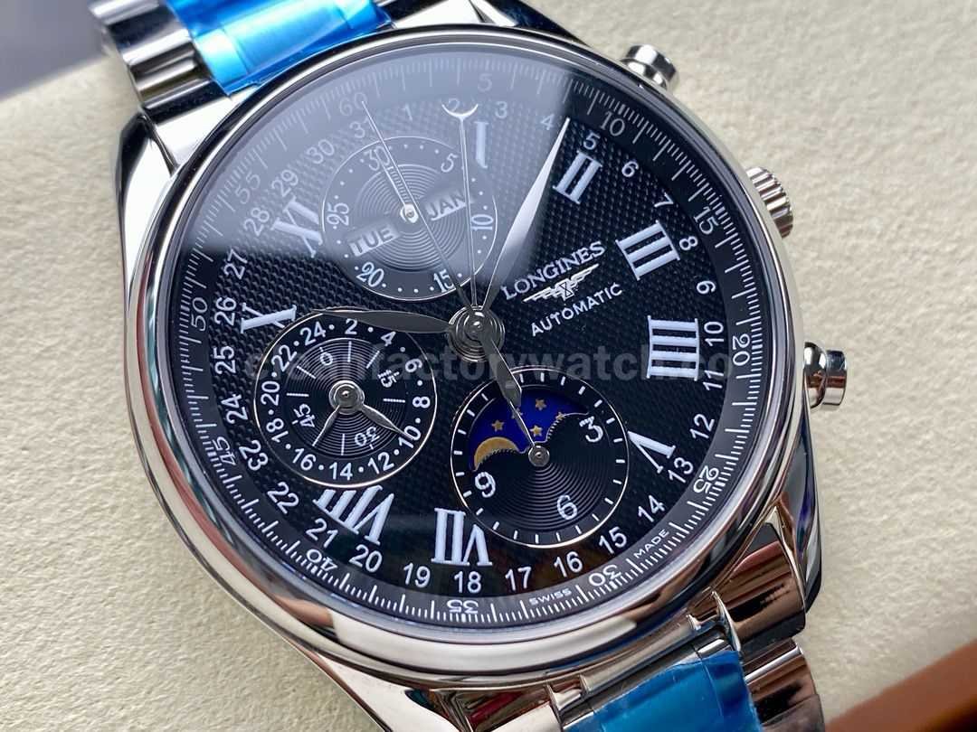 The LGS Longines L2.773.4 Moon Phase Multi-function Mechanical Watch is a meticulously crafted replica that closely mirrors the original. From the enhanced movement and high-precision case engraving to the luxurious moon phase dial and flawlessly polished bracelet, this watch offers outstanding quality at a fraction of the price. If you love Longines classic design but want a more affordable alternative, this is an excellent choice.