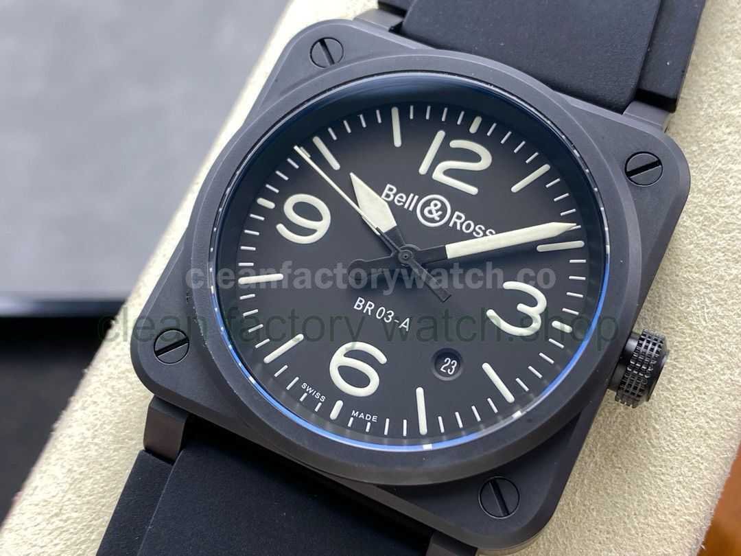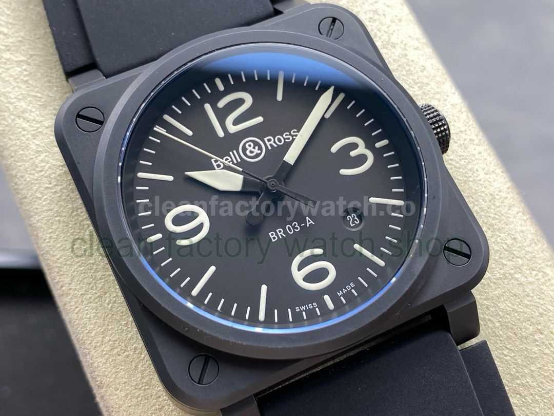 M+Factory Bell & Ross BR 03-92 Ceramic BR0392-BL-CE Ceramic 41mm Rubber Strap Arabic Numerals Black Dial