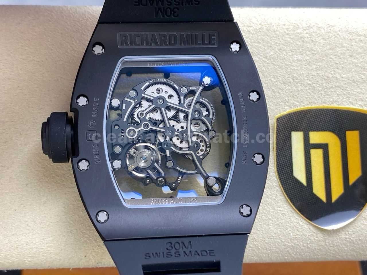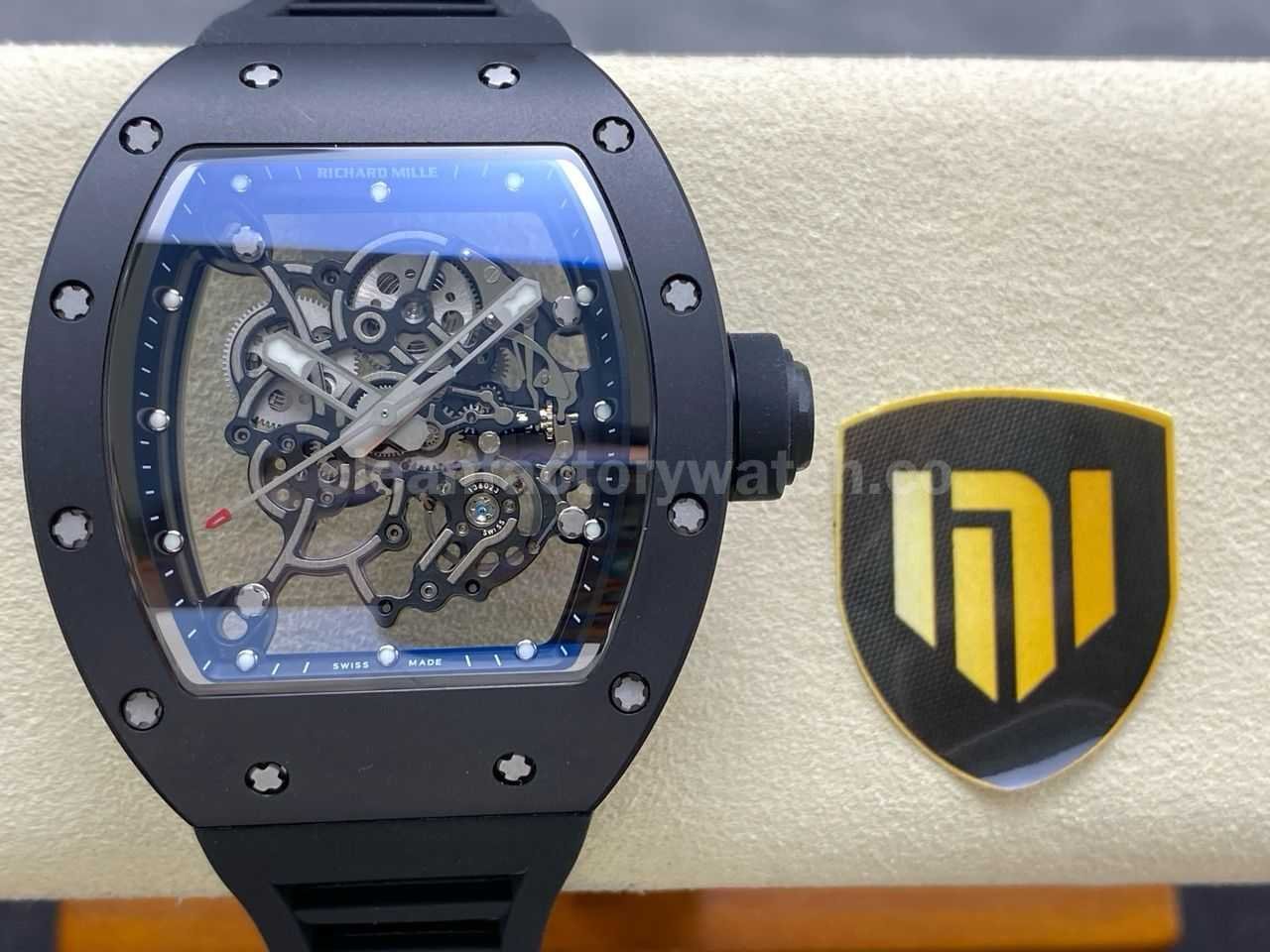 NEW Factory Richard Mille RM055 Bubba Watson 42.7mm Ceramic Black Rubber Strap Skeletonized Black Dial