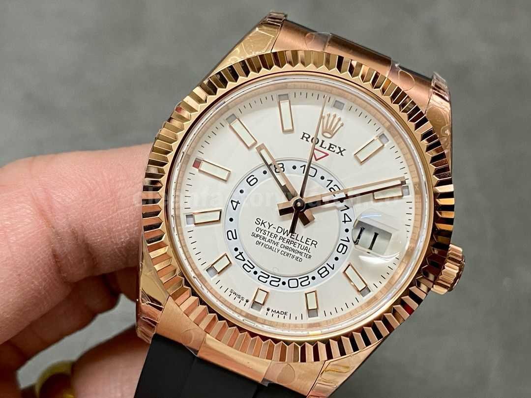 Noob Factory Rolex Sky-Dweller 336235-0003 42mm Rose Gold Rubber Strap White Dial