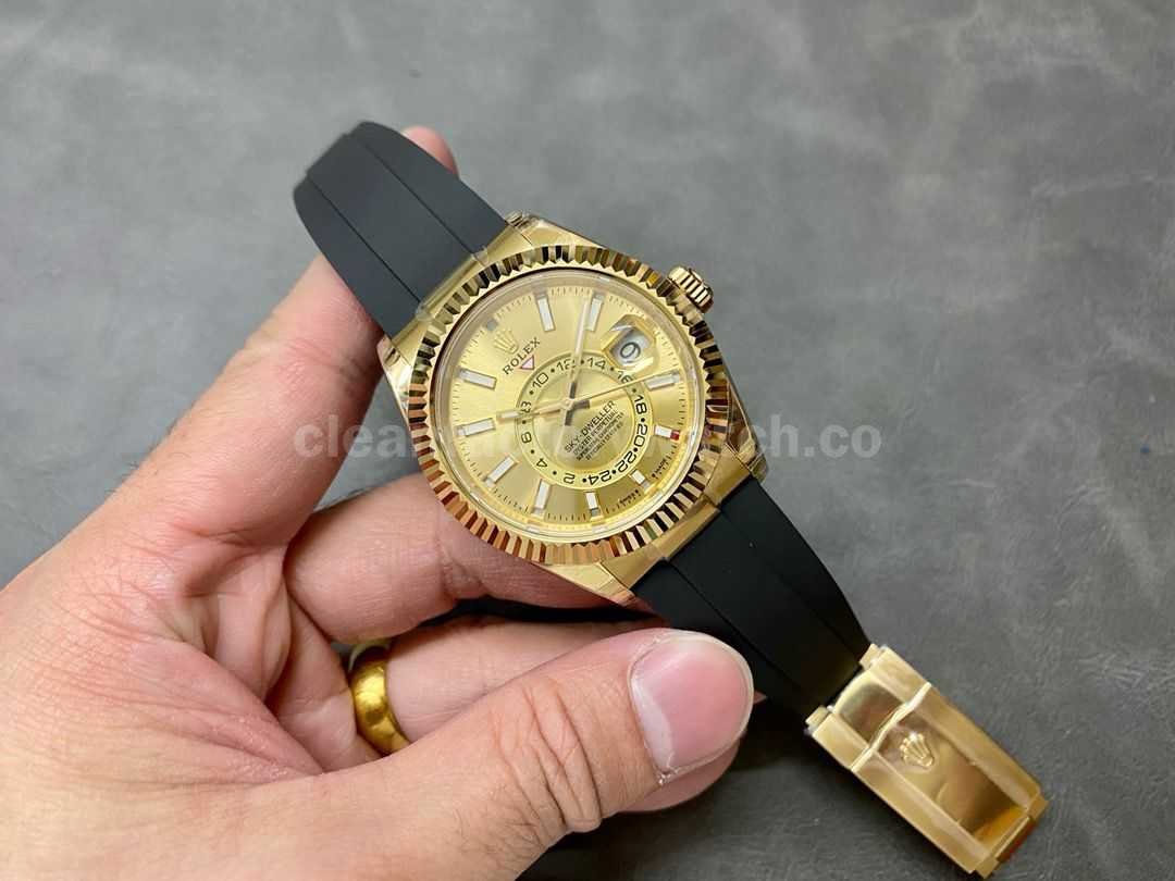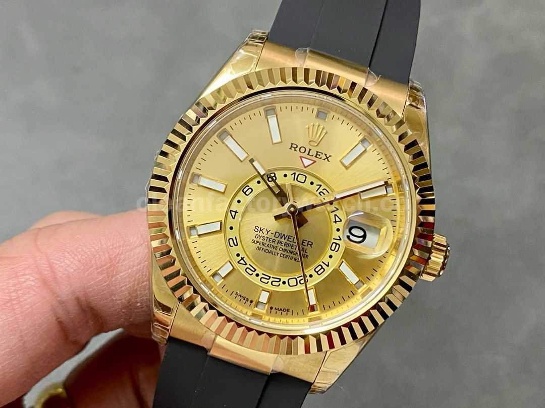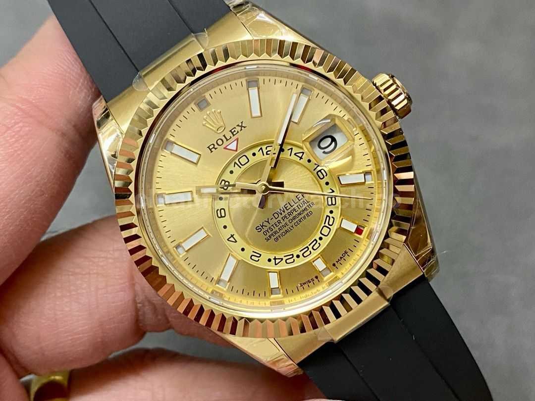 Noob Factory Rolex Sky-Dweller 336238-0001 42mm Yellow Gold Rubber Strap Yellow Gold Dial
