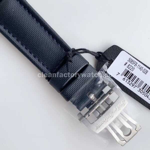 The replica comes with a canvas-style strap similar to the original, paired with a tang buckle featuring a trapezoidal logo. Both the texture and tactile feel are close to the genuine product.