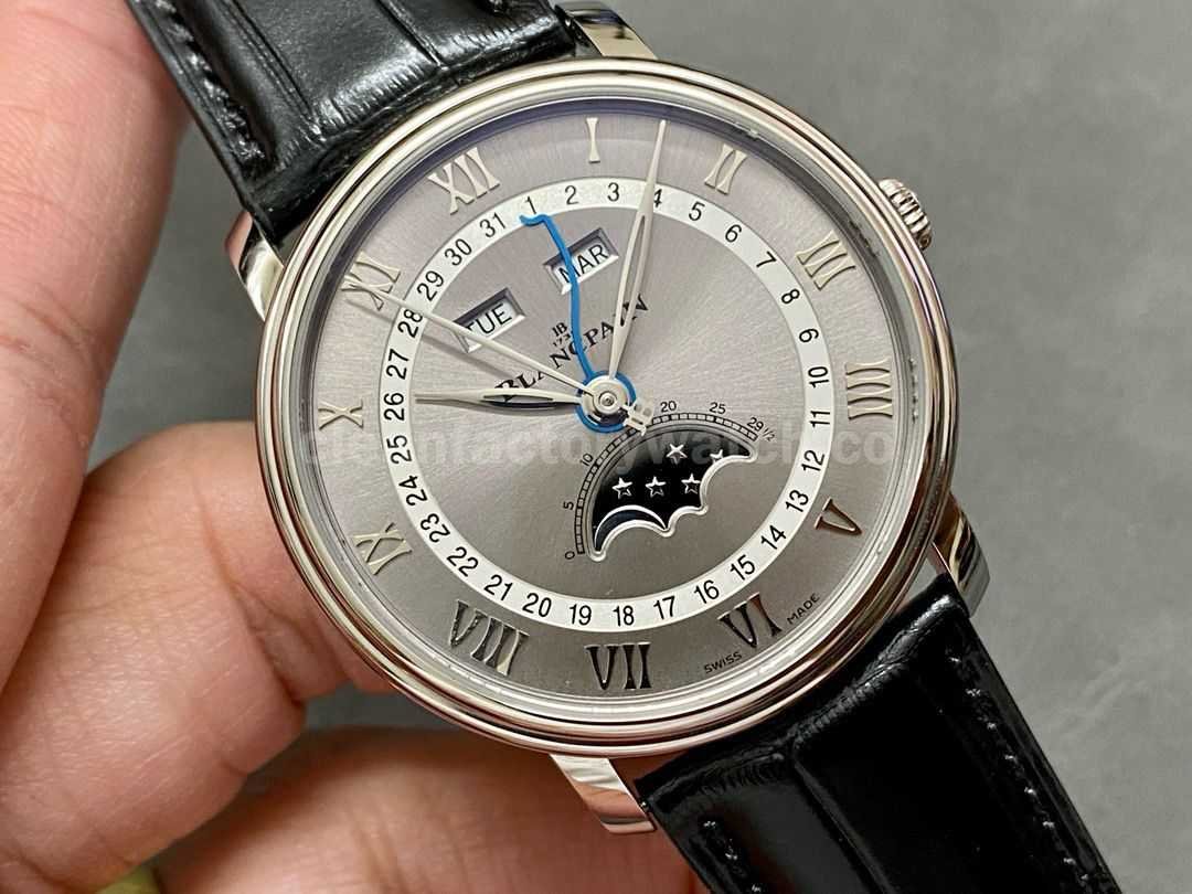 OM Factory Blancpain Villeret Quantième Complet 6654-1113-55B 40mm Steel Leather Strap Roman Numerals Grey Dial