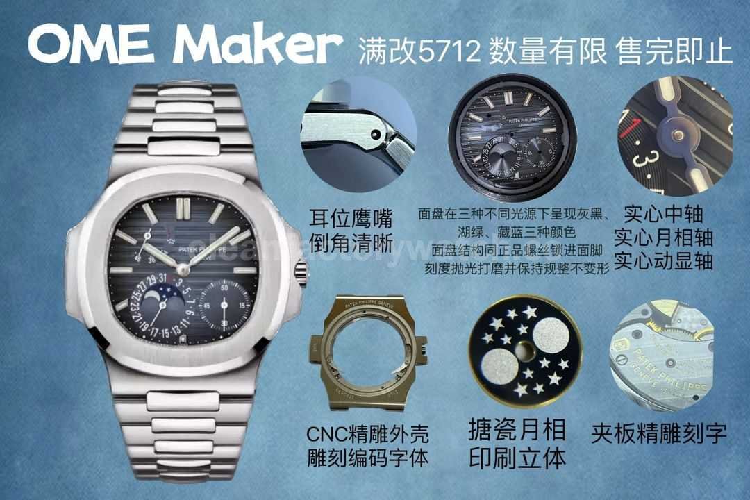OME Factory masterpiece ~ Patek Philippe 5712a major modification, one step, no need to modify, everything that can be upgraded has been upgraded