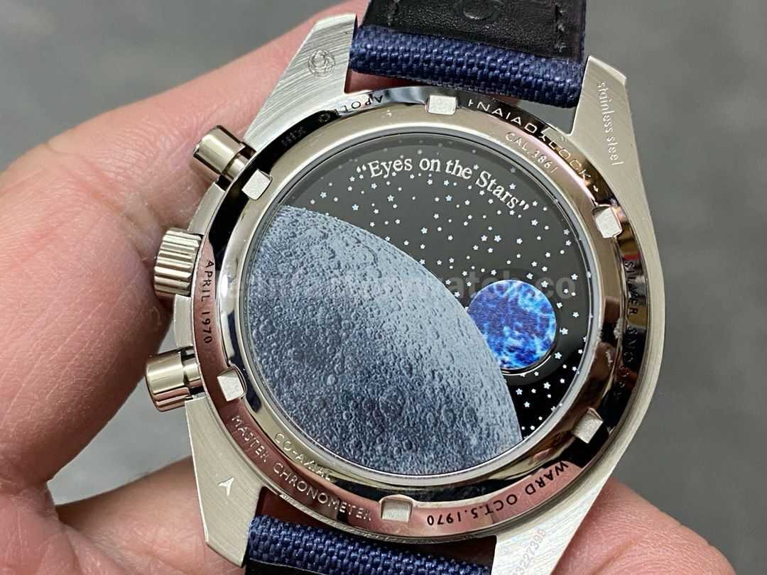 β’Deep blue woven nylon strap, identical in tone to the original, features a mission orbit map and serial markings on the reverse.