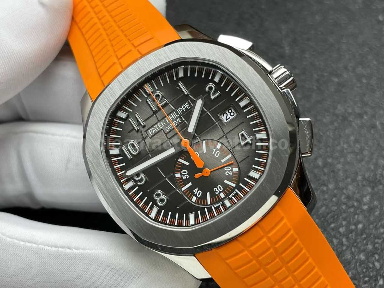P1 Factory Patek Philippe Aquanaut 5968A-001 42mm Steel Orange Rubber Strap Black Dial