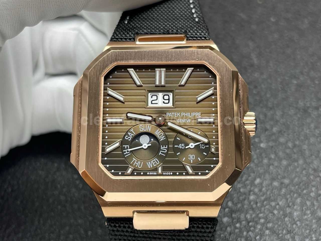 P1 Factory Patek Philippe Cubitus 5822 45mm Rose Gold Textile Strap Brown Dial