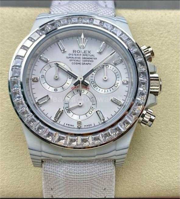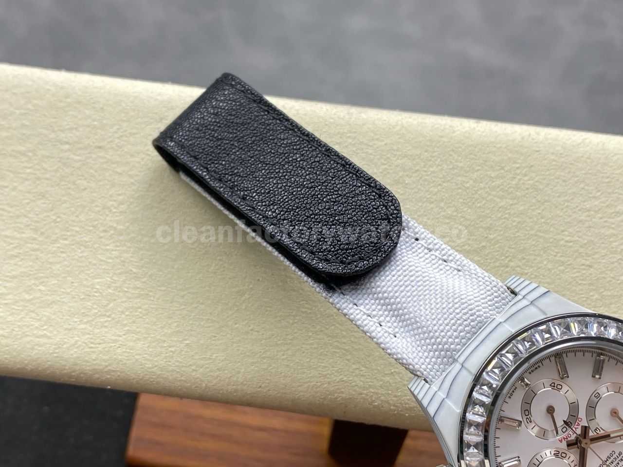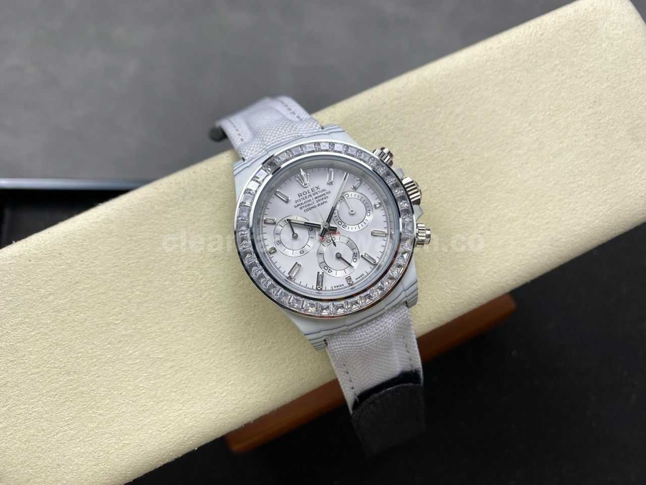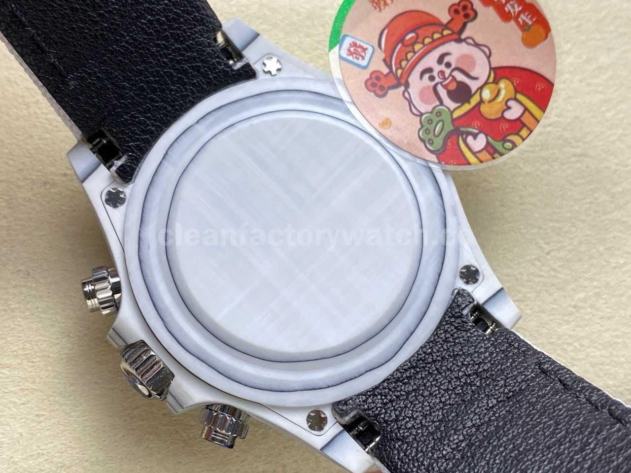 PPM Factory Rolex Daytona Modified 116500 White Carbon Fiber Calf Skin Strap Diamond Baguette White Dial