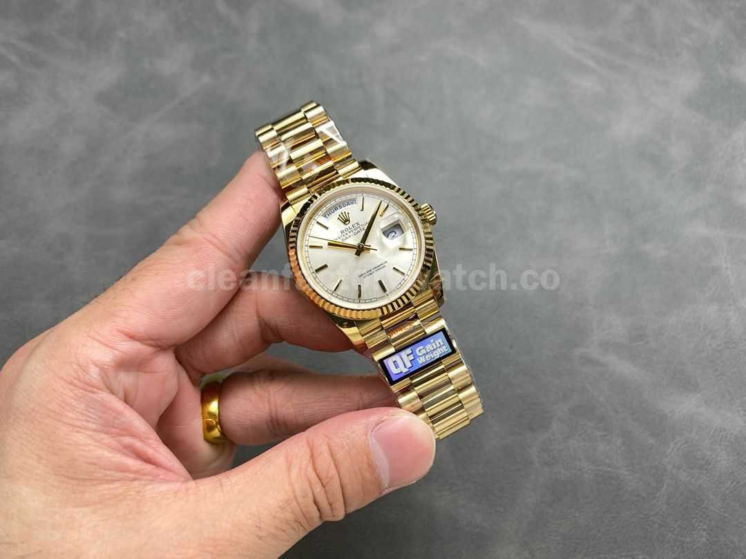 QF Factory Counterweight Rolex Day-Date 128238-0081 36mm Full Yellow Gold Silver Dial