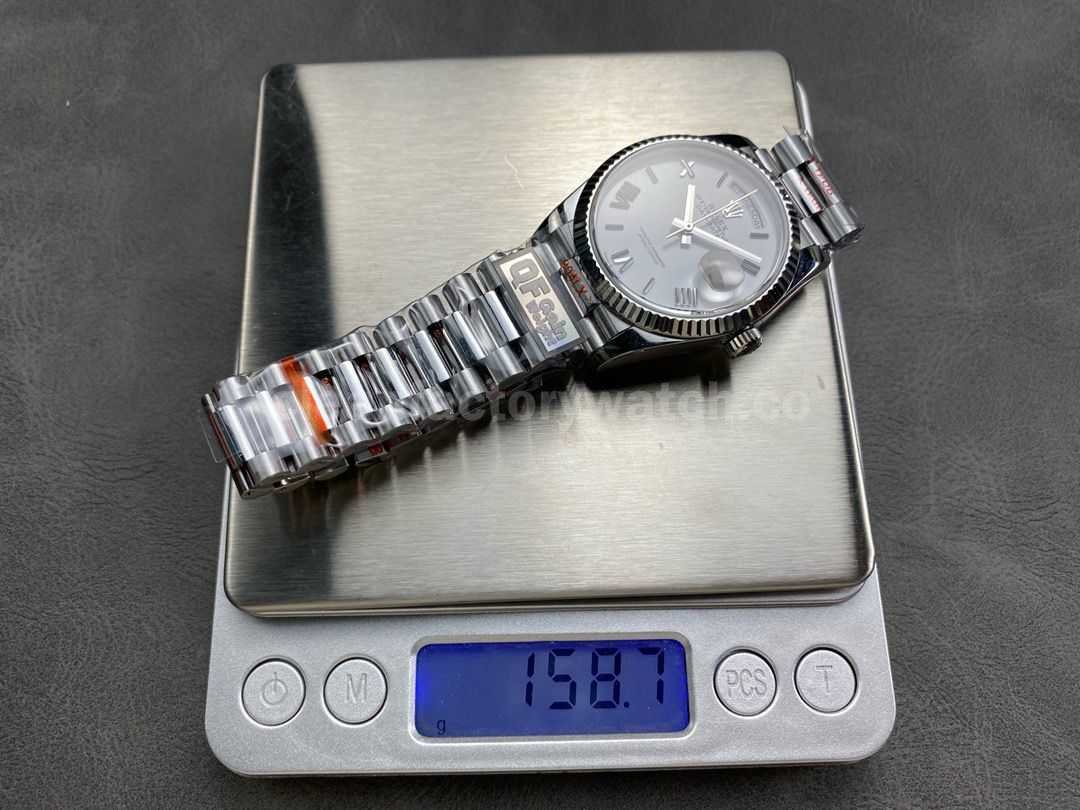 QF Factory Counterweight Rolex Day-Date 128239-0059 36mm Full 904L Roman Numerals White Dial