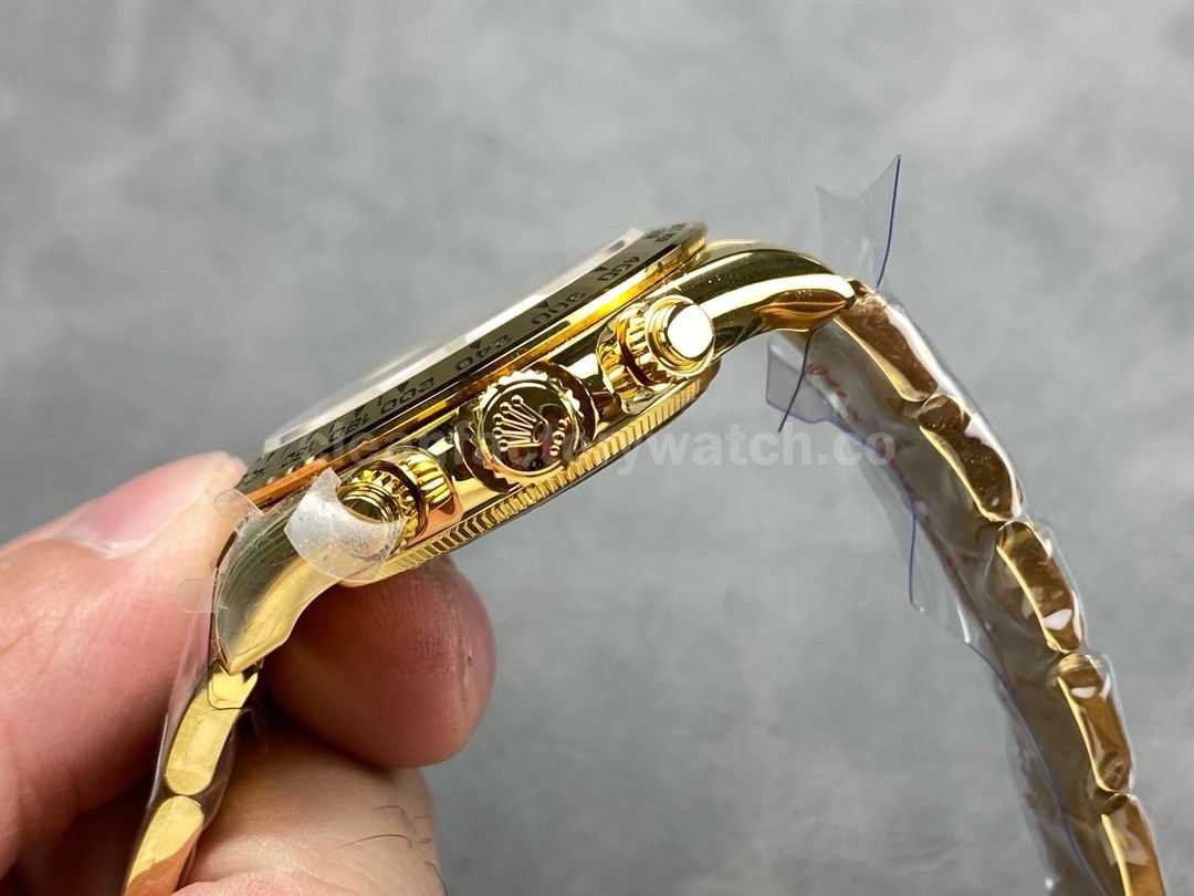 The QF Factory Weighted 4131 Rolex Daytona stands out as a top-tier masterpiece in the world of high-end replica watches, thanks to its exquisite craftsmanship, outstanding performance, and extreme attention to detail. This model is equipped with the latest 4131 movement, crafted from 904L stainless steel, and designed with precise weight distribution to achieve a total weight of 180g, perfectly replicating the texture and wearing experience of the original watch. The real-life photography showcases the delicate electroplating craftsmanship, enhancing the watchβs visual appeal and luxurious feel.