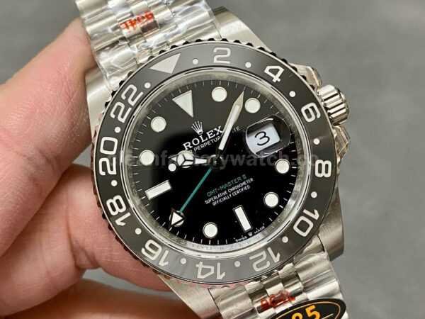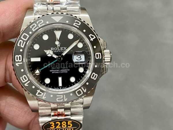 The QF Rolex GMT 3285 movement watch showcases the pinnacle of watchmaking craftsmanship with its exceptional workmanship and outstanding performance. Equipped with the latest GMT function and a genuine dual-color ceramic Clean V3 bezel, this timepiece exudes a unique blend of style and cutting-edge technology.