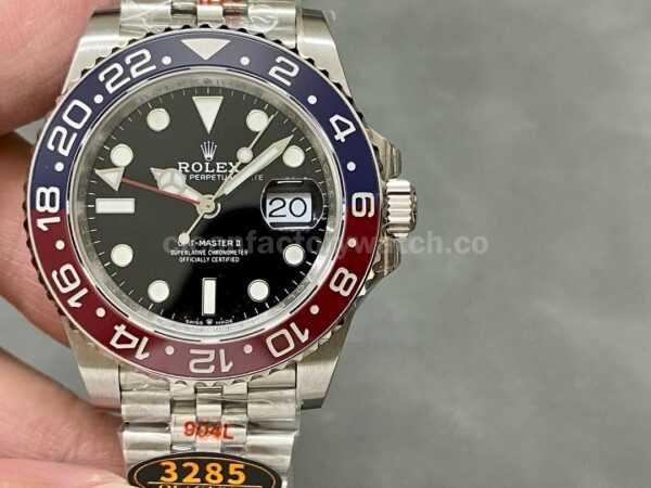 The QF Rolex GMT 3285 movement watch showcases the pinnacle of watchmaking craftsmanship with its exceptional workmanship and outstanding performance. Equipped with the latest GMT function and a genuine dual-color ceramic Clean V3 bezel, this timepiece exudes a unique blend of style and cutting-edge technology.
