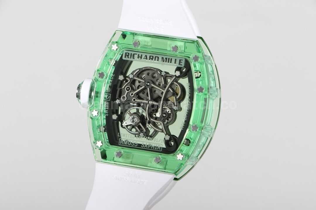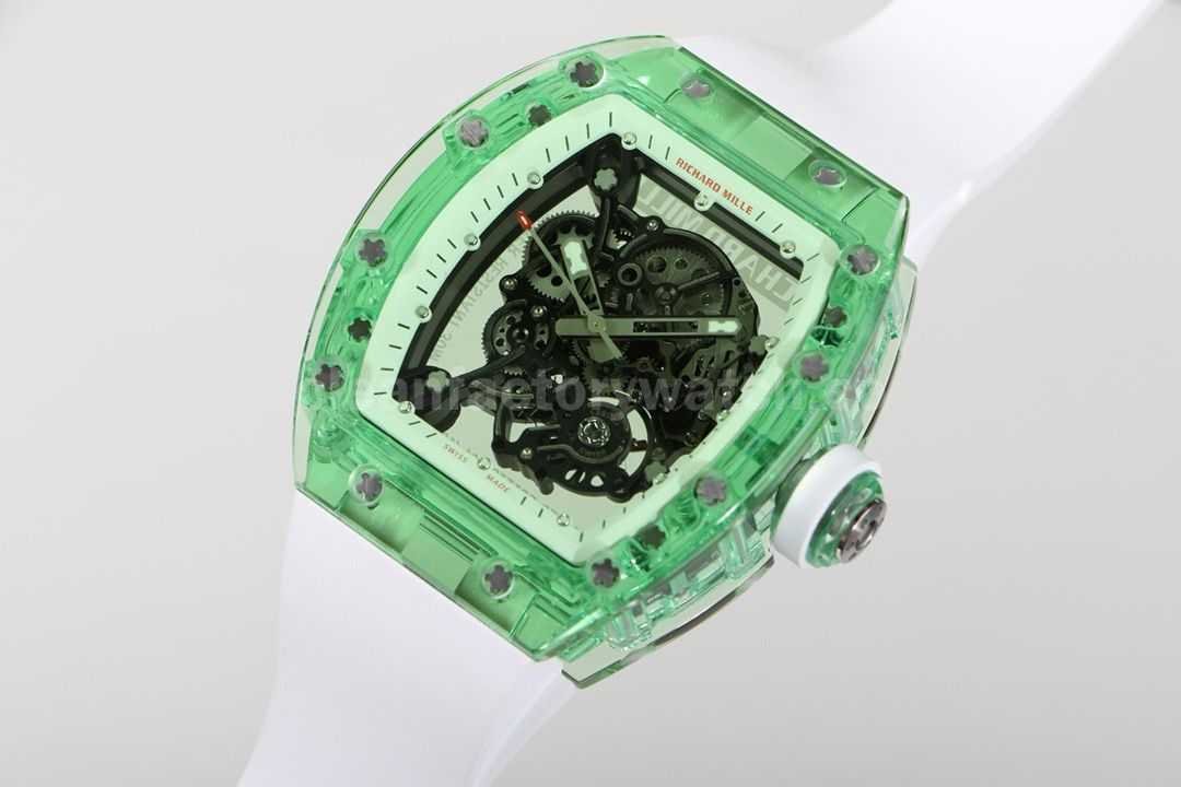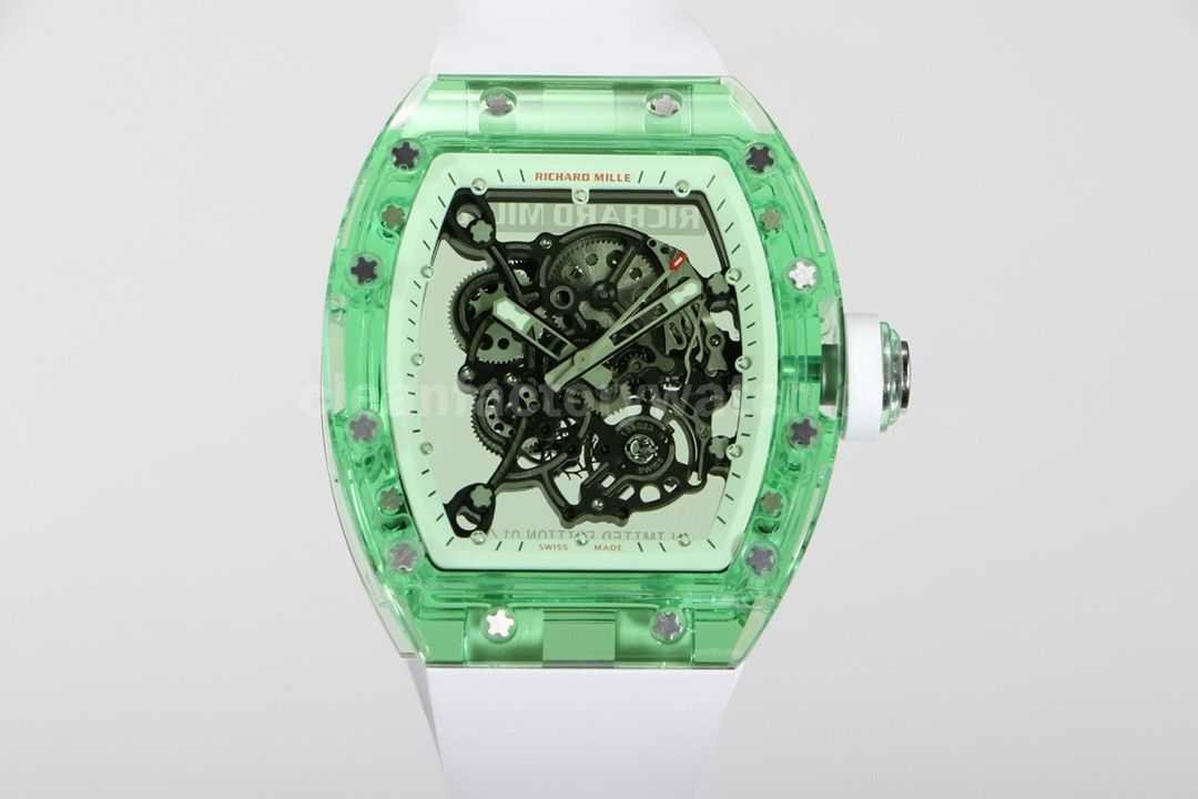 RM Factory Richard Mille RM 055 43mm Green Crystal White Rubber Strap Skeletonized White Dial