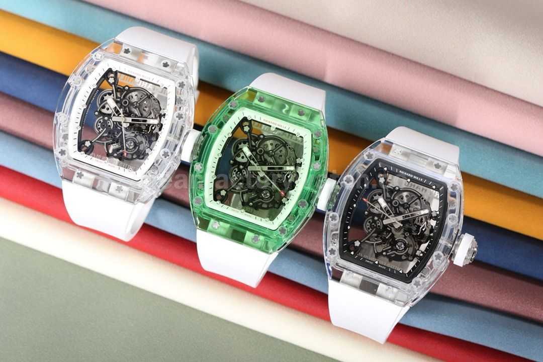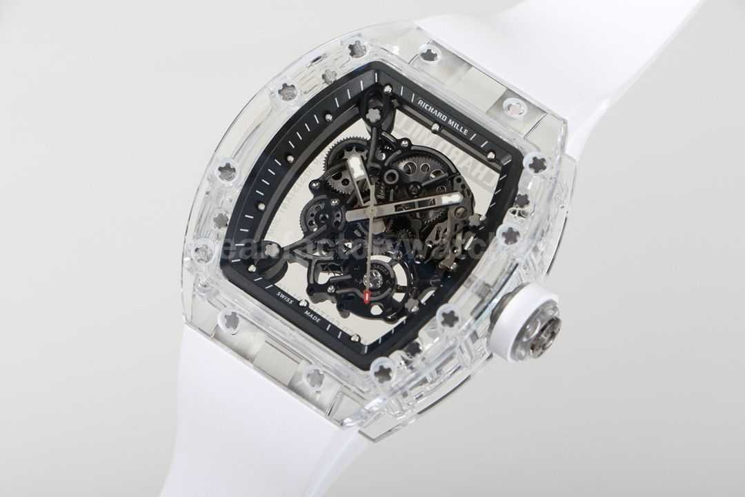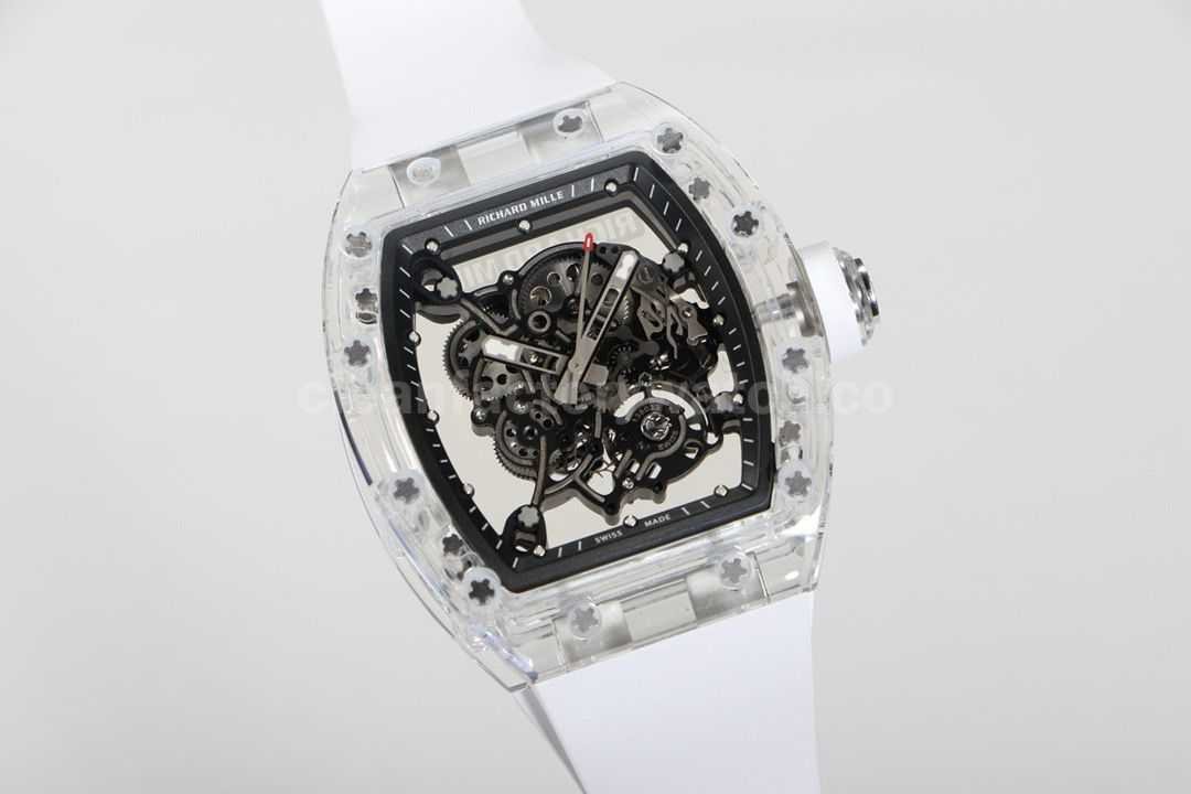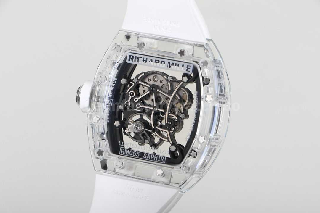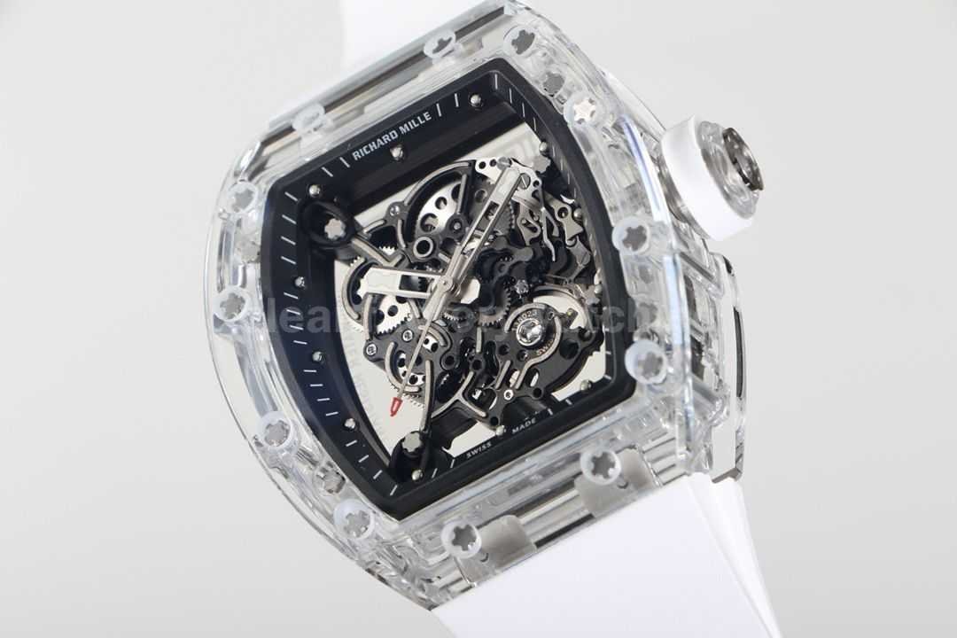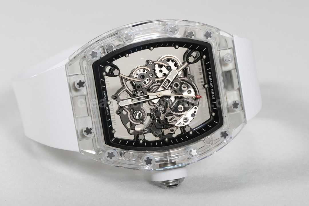 RM Factory Richard Mille RM 055 43mm Transparent Crystal White Rubber Strap Skeletonized Black Dial