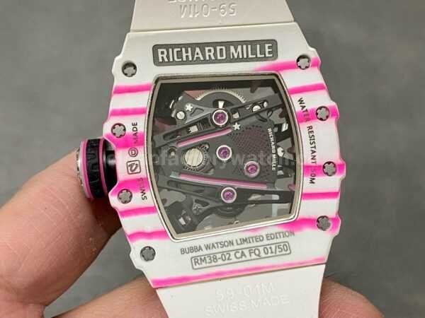 RM Factory “New Watch” RICHARD MILLE launches RM38-02 Tourbillon Bubba Watson pink theme hollow tourbillon watch: golf inspiration