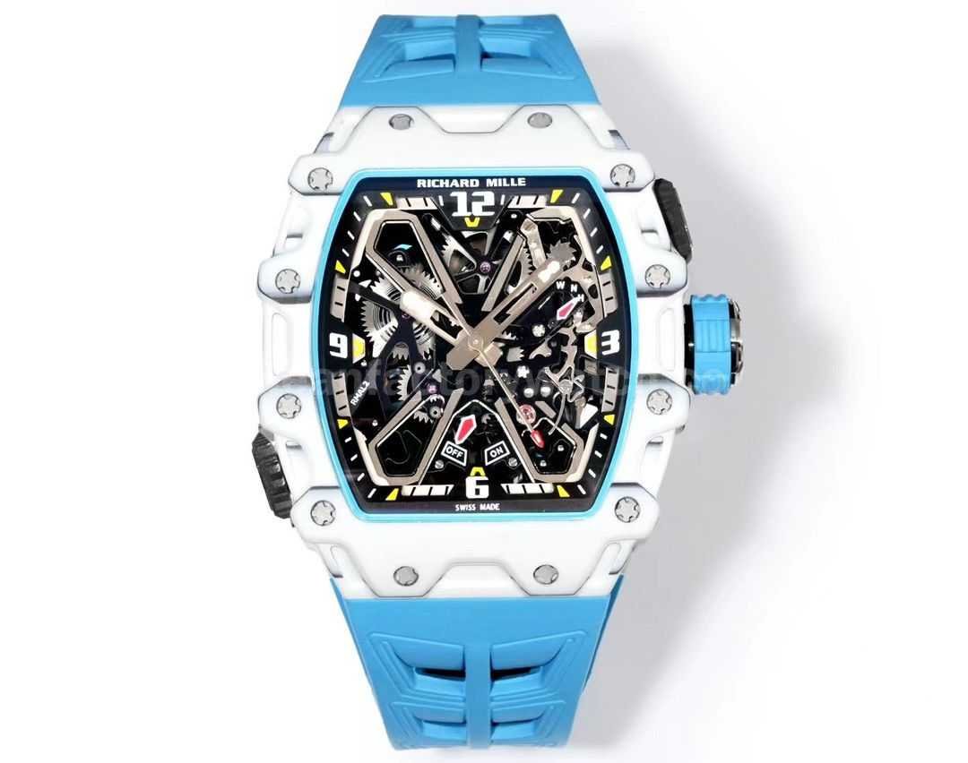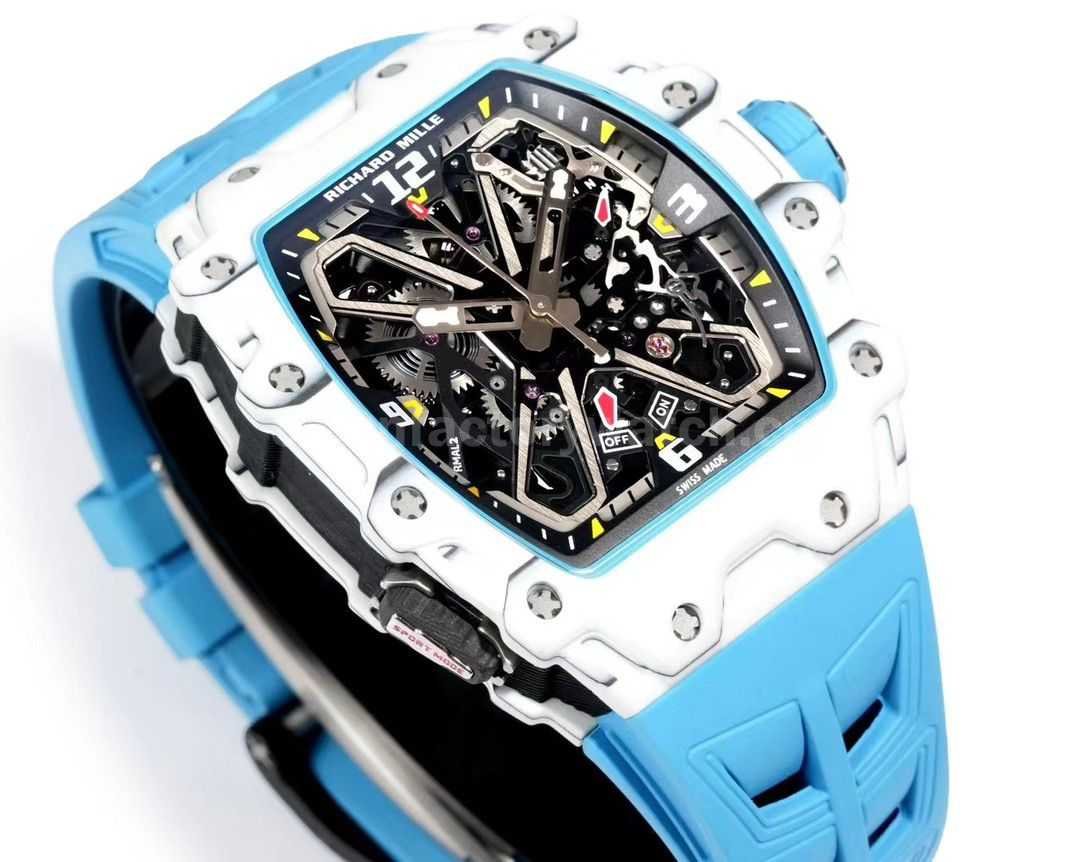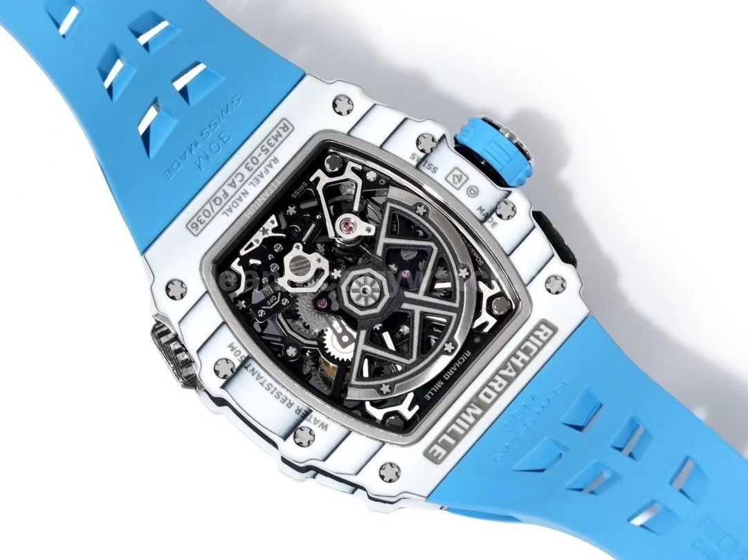 RM Factory Richard Mille RM35-03 White Carbon Fiber Light Blue Rubber Strap Black Skeletonized Dial