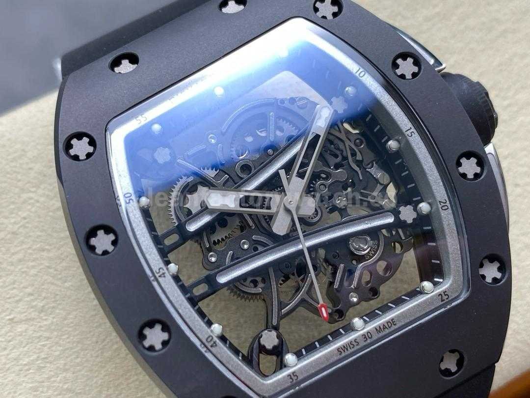 RM Factory Richard Mille RM61-01 42.7mm Carbon Fiber Black Rubber Strap Silver Skeleton Dial