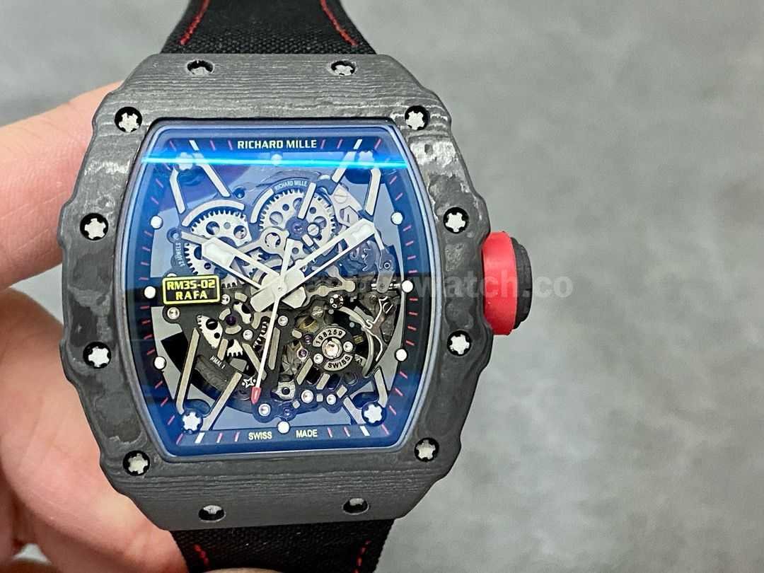 T+ Factory Richard Mille RM35-02 44.5mm Carbon Fiber Textile Strap Skeletonized Dial